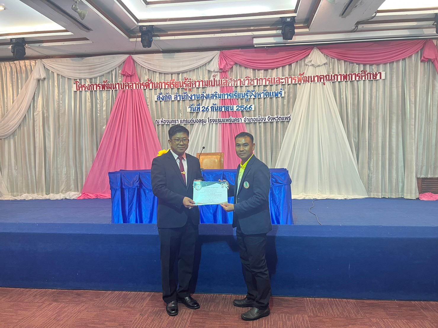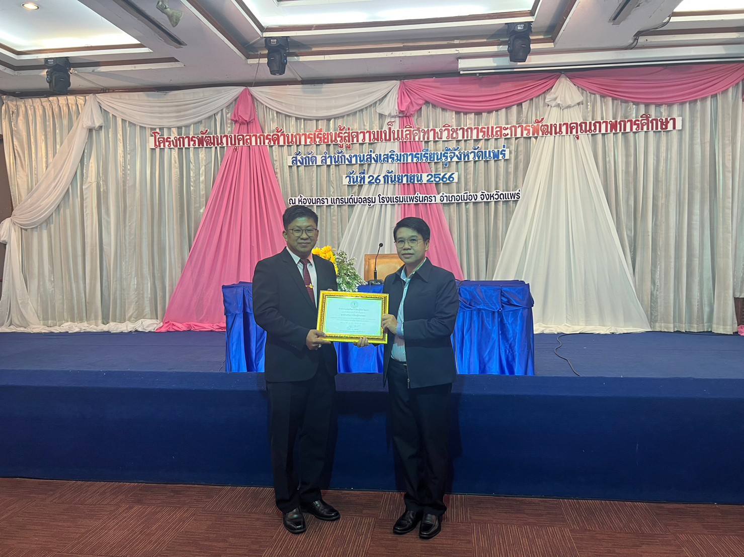นางสาวเสาวนีย์ ชาพัฒิพงศ์ ผอ.กศน.อำเภอเมืองแพร่ ปฏิบัติหน้าที่ ผอ.สกร.อำเภอเมืองแพร่ รักษาการในตำแหน่ง ผอ.สกร.อำเภอลอง พร้อมด้วยคณะครูและบุคลากร สกร.อำเภอลอง เข้าร่วมโครงการพัฒนาบุคลากรด้านการเรียนรู้สู่ความเป็นเลิศ ทางวิชาการและการพัฒนาคุณภาพการศึกษา สังกัดสำนักงานส่งเสริมการเรียนรู้จังหวัดแพร่ เเละได้รับรางวัล มีระดับคะแนนเฉลี่ยผลการทดสอบทางการศึกษาระดับชาติด้านการศึกษา (N-NET) ผ่านเกณฑ์การประเมินเป้าหมายขั้นสูง (ร้อยละ 53.47) ลำดับที่ 2 และมีร้อยละผู้สอบผ่านเกณฑ์วัดผลสัมฤทธิ์ปลายภาคเรียน ภาคเรียนที่1/2566 หลักสูตรการ ศึกษานอกระบบระดับการศึกษาขั้นพื้นฐาน พุทธศักราช 2551 ลำดับที่2 (85.49) ของสำนักงานส่งเสริมการเรียนรู้จังหวัดแพร่ ณ ห้องนครา แกรนด์บอลรูม โรงแรมเเพร่นครา อำเภอเมือง จังหวัดแพร่