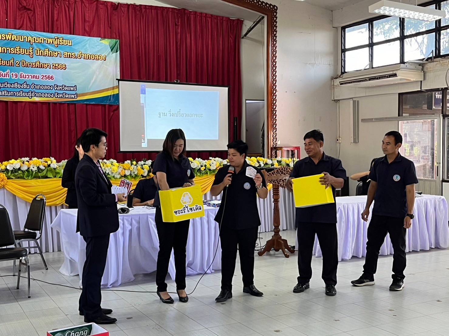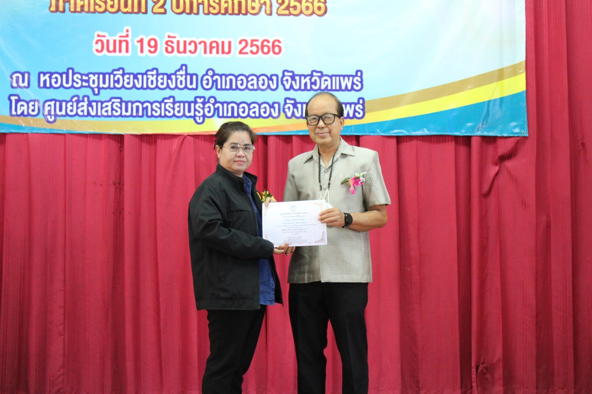 วันที่ 19 ธันวาคม 2566 นางสาวเสาวนีย์ ชาพัฒิพงศ์ ผอ.กศน.อำเภอเมืองแพร่ ปฏิบัติหน้าที่ ผอ.สกร.อำเภอเมืองแพร่ รักษาการในตำแหน่ง ผอ.สกร.อำเภอลอง ร่วมกับคณะครูและบุคลากร สกร.อำเภอลอง จัด โครงการพัฒนาคุณภาพผู้เรียน กิจกรรมปรับพื้นฐานการเรียนรู้ นักศึกษา สกร.อำเภอลอง ภาคเรียนที่2 ปีการศึกษา2566 มีฐานการเรียนรู้ดังนี้ 1. ฐานการเรียนรู้สู่ความสำเร็จ 2.เปิดบ้าน สกร.อำเภอลอง 3. วิ่งเปรี้ยวแยกขยะ 4.ฉลาดคิดวิทยาศาสตร์ 5.ภาษาพาเพลิน โดยมีนายธีระ แก้วมา นายอำเภอลอง เป็นประธานในพิธีเปิด ณ หอประชุมเวียงเชียงชื่น อ.ลอง จ.เเพร่