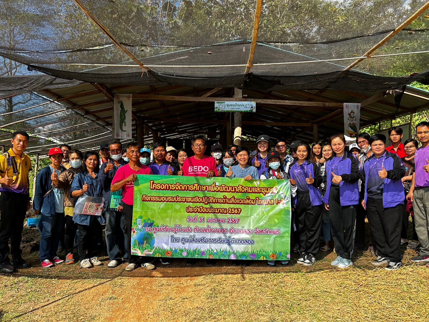 วันที่ 31 มกราคม 2567 นางสาวเสาวนีย์ ชาพัฒิพงศ์ ผอ.กศน.อำเภอเมืองแพร่ ปฏิบัติหน้าที่ ผอ.สกร.อำเภอเมืองแพร่ มอบหมายให้นายชาญวิทย์ อนุศาสตน์ปรีชากุล ครู กศน. ตำบลเวียงต้า และคณะครู บุคลากรสกร.อำเภอลอง จัดโครงการการศึกษาเพื่อพัฒนาสังคมและชุมชนกิจกรรมอบรมเชิงปฏิบัติการด้านสิ่งแวดล้อมไตรมาส 1-2 ประจำปีงบประมาณ2567 โดยมีฐานการเรียนรู้ดังนี้ 1. ฐานเรียนรู้พลังสะอาดปราศจากมลพิษ 2. ฐานเรียนรู้ลองหยุดเผา เราทำปุ๋ย 3. ฐานเรียนรู้ P.M.2.5 4. ฐานเรียนรู้ขยะสร้างงานขยะสร้างเงิน ณ ศูนย์เรียนรู้บ้านปงตำบลต้าผามอก อำเภอลอง จังหวัดแพร่ โดยศูนย์ส่งเสริมการเรียนรู้อำเภอลอง