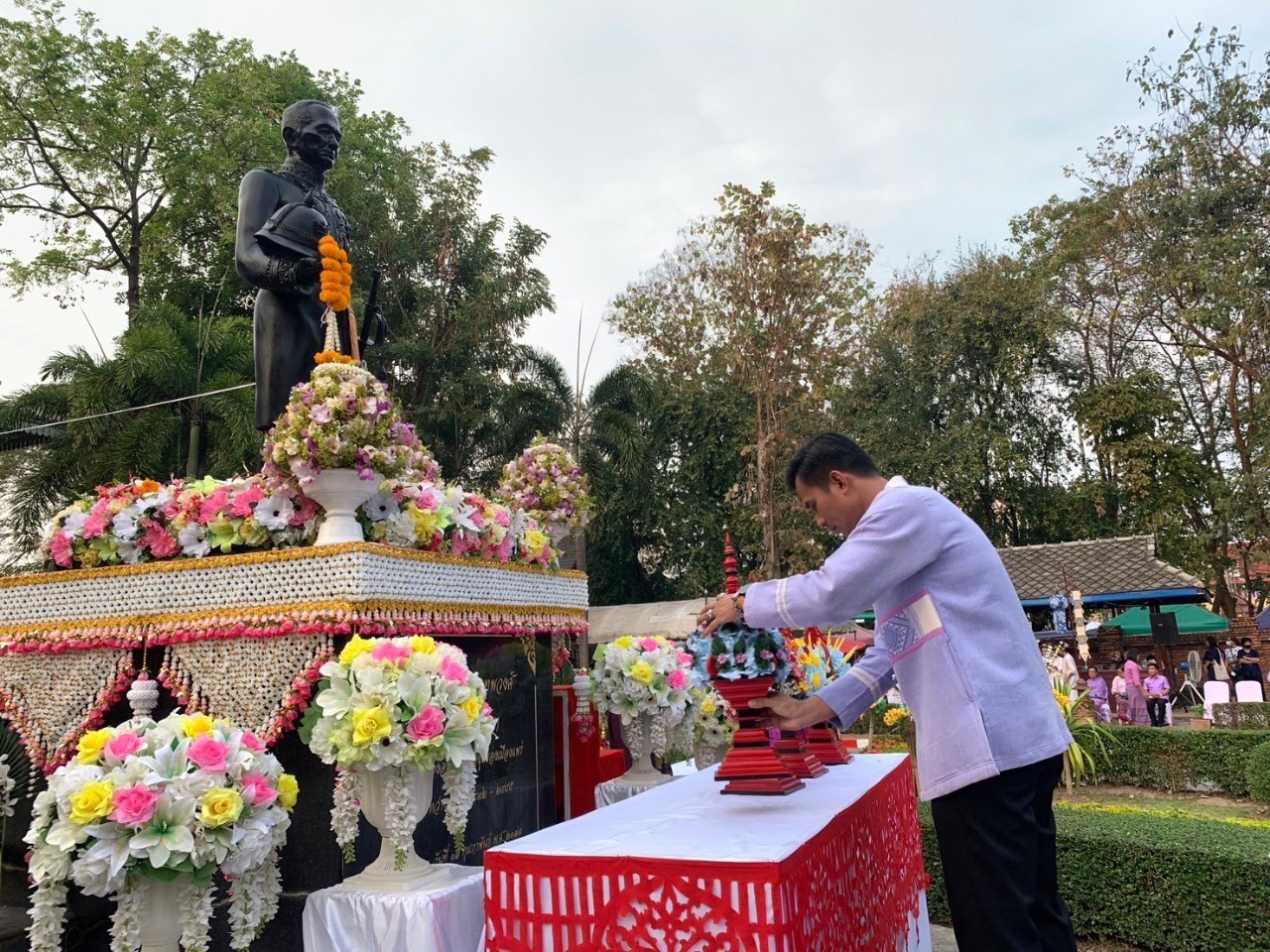 วันที่ 17 กุมภาพันธ์ 2567 นางสาวเสาวนีย์ ชาพัฒิพงศ์ ผอ.กศน.อำเภอเมืองแพร่ ปฏิบัติหน้าที่ ผอ.สกร.อำเภอเมืองแพร่ รักษาการในตำแหน่ง ผอ.สกร.อำเภอลอง มอบหมายให้นางสาวรัชนีกร พิมสาร ครู สกร.อำเภอลอง, นางสาวลัดดาวัลย์ ซุ่นฮะ ครูอาสาสมัครฯ, นายชาญวิทย์ อนุศาสตน์ปรีชากุล ครู กศน. ตำบลเวียงต้า และนายศุภวิชญ์ สวนจักร ครูอาสาสมัครฯ เข้าร่วมขบวนงานแห่เครื่องสักการะ “น้อมรำลึกเจ้าหลวงพิริยเทพวงศ์” ครบ 188 ปีชาตกาล เพื่อร่วมแสดงความกตัญญูกตเวที สำนึกบุญคุณเจ้าหลวงองค์สุดท้าย ณ กาดสามวัย และเทศบาลเมือง