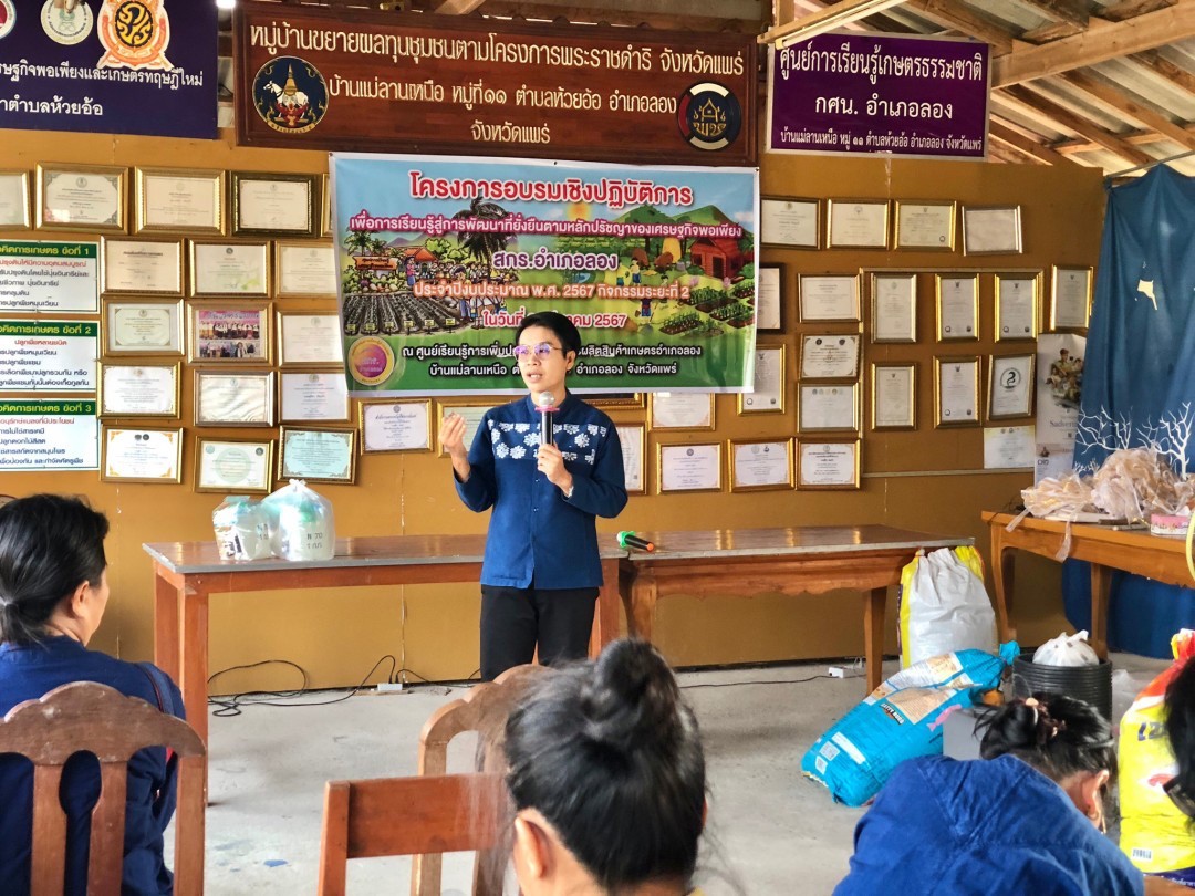 วันที่ 25 มีนาคม 2567 นางสาวเสาวนีย์ ชาพัฒิพงศ์ ผอ.กศน.อำเภอเมืองแพร่ ปฏิบัติหน้าที่ ผอ.สกร.อำเภอเมืองแพร่ รักษาการในตำแหน่ง ผอ.สกร.อำเภอลองมอบหมายให้ นางสาวลัดดาวัลย์ ซุ่นฮะ ครูอาสาสมัครฯและคณะครูศกร.ตำบลทุกตำบลดำเนินกิจกรรมตามโครงการอบรมเชิงปฏิบัติการการเรียนรู้สู่การพัฒนาอย่างยั่งยืนตามหลักปรัญาของเศรษฐกิจพอเพียง ปี 2567 กิจกรรมระยะที่2 ณ ศูนย์การเรียนรู้เพื่อเพิ่มผลผลิตทางการเกษตร อำเภอลอง บ้านแม่ลานเหนือ อำเภอลอง จังหวัดแพร่ มีประชาชนจากทุกตำบลตำบลละ2คน เข้าร่วมกิจกรรมโดยมีนายสุริยา ขันแก้ว เป็นวิทยากรฐานการเรียนรู้การทำดินปลูก การปรุงดินเพื่อการเพาะเมล็ด การปลูกผักสวนครัว และนางแสงเงิน ปัญญาดี เป็นวิทยากร ฐานการเรียนรู้การใช้วัสดุเปลือกส้มโอมาทำน้ำยาล้างจานจากสารสกัดจากเปลือกส้มโอและมีการถอดองค์ความรู้จากการเรียนรู้ในวันนี้ของตัวแทนผู้ร่วมกิจกรรม