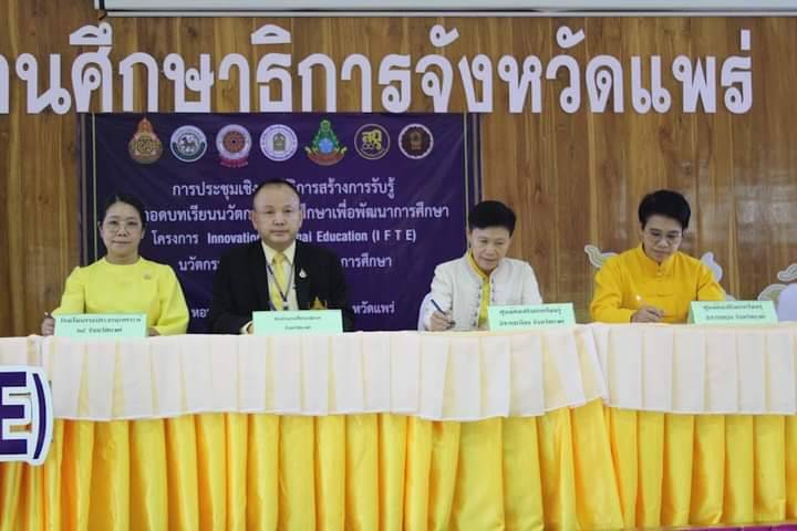 วันที่ 1 เมษายน พ.ศ.2567 ได้รับมอบหมายให้เข้าร่วมพิธีลงนามบันทึกข้อตกลงความร่วมมือ (MOU) และประชุมสร้างการรับรู้และถอดบทเรียนนวัตกรรมการศึกษาโครงการ Innovation For Thai Education (IFTE) นวัตกรรมการศึกษาเพื่อพัฒนาการศึกษาจังหวัดแพร่ โดยมีนายสุทิน จันทรวรเชตต์ ศึกษาธิการจังหวัดแพร่ เป็นประธาน ณ หอประชุมสำนักงานศึกษาธิการจังหวัดแพร่ ตำบลป่าแมต อำเภอเมืองแพร่ จังหวัดแพร่