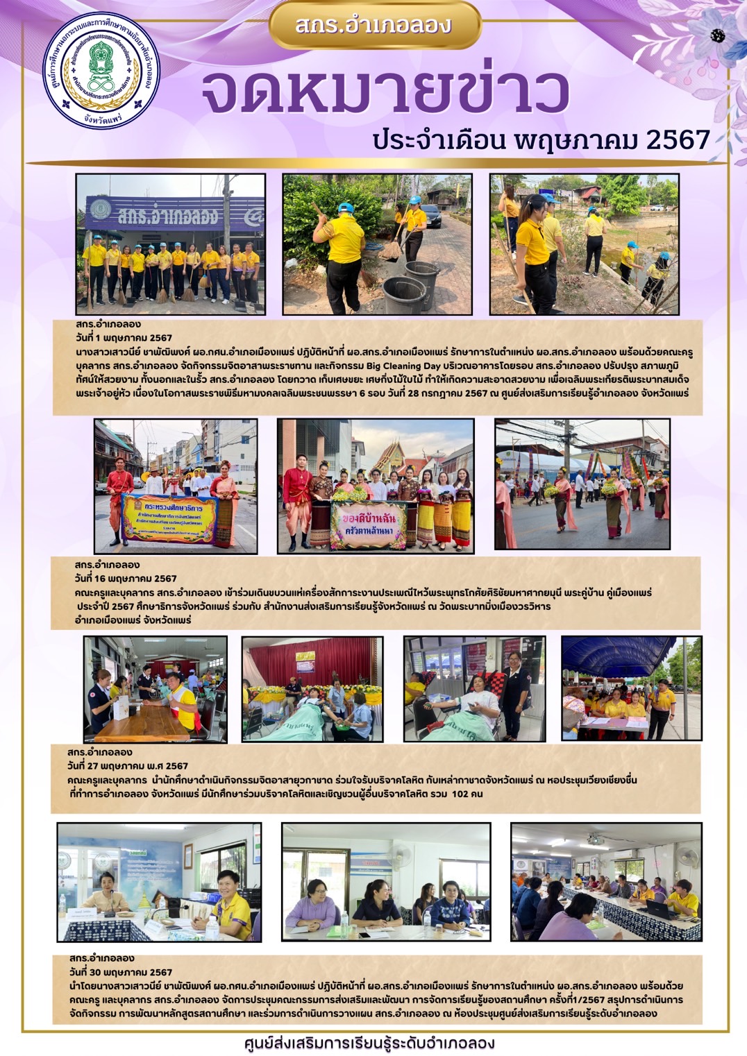 สรุปผลการดำเนินงาน กศน.อำเภอลอง ประจำเดือน พฤษภาคม 2567