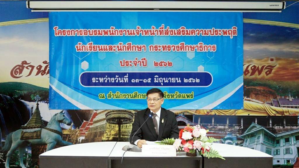 วันที่ 13 มิถุนายน 2562 นายประพันธ์ ดอกแก้ว ครูอาสาสมัคร เข้าร่วมโครงการอบรมพนักงานเจ้าหน้าที่ส่งเสริมความประพฤตินักเรียนและนักศึกษา กระทรวงศึกษาธิการ ประจำปี 2562 ระหว่างวันที่ 13-15 มิถุนายน 2562 ณ สำนักงานศึกษาธิการจังหวัดแพร่