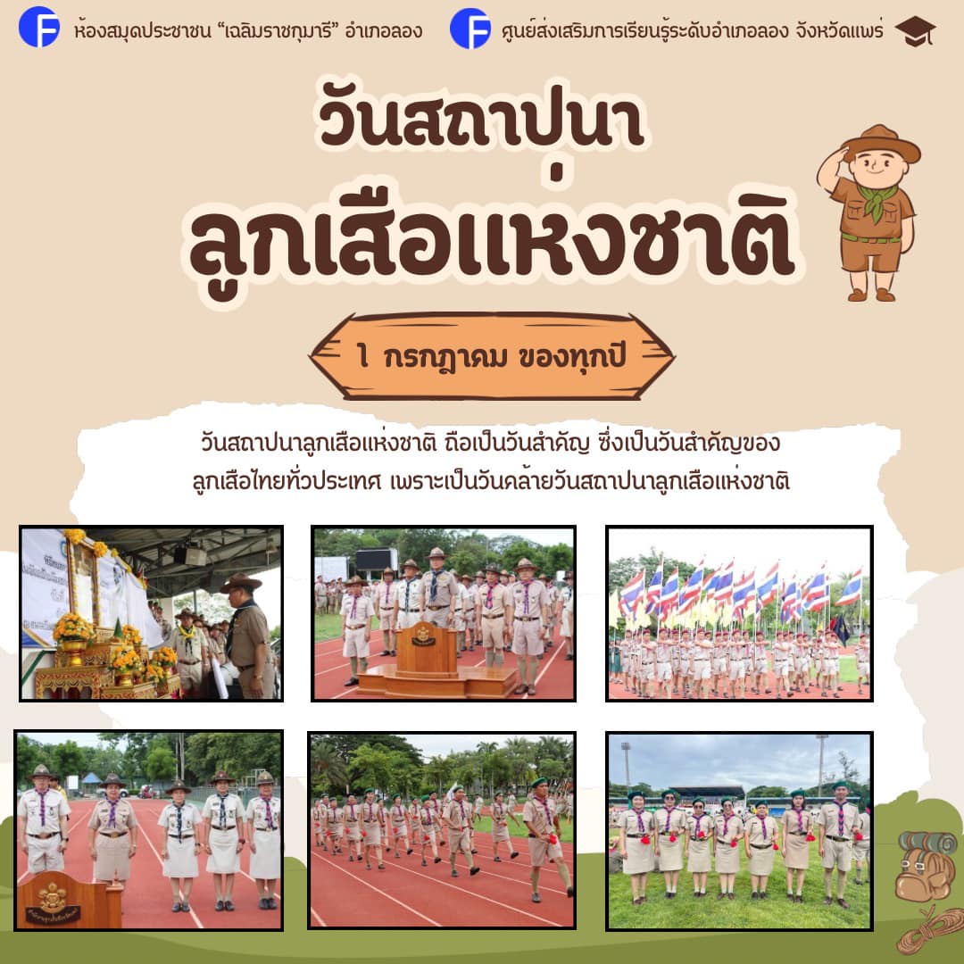 นำโดยนางสาวเสาวนีย์ ชาพัฒิพงศ์ ผอ.กศน.อำเภอเมืองแพร่ ปฏิบัติหน้าที่ ผอ.สกร.ระดับอำเภอเมืองแพร่ รักษาการในตำแหน่ง ผอ.สกร.ระดับอำเภอลอง นำบุคลากรทางการลูกเสือ สกร.ระดับอำเภอลอง เข้าร่วมพิธีทบทวนคำปฏิญาณและสวนสนาม เนื่องในวันคล้ายวันสถาปนาคณะลูกเสือแห่งชาติ ประจำปี 2567 สำนักงานลูกเสือจังหวัดแพร่ เพื่อน้อมรำลึกในพระมหากรุณาธิคุณพระบาทสมเด็จพระมงกุฎเกล้าเจ้าอยู่หัว พระผู้พระราชทานกำเนิดลูกเสือไทย และแสดงความจงรักภักดีแด่พระบาทสมเด็จพระเจ้าอยู่หัว พระประมุขของคณะลูกเสือแห่งชาติ โดยมีนายชุติเดช มีจันทร์ ผู้ว่าราชการจังหวัดแพร่ เป็นประธานในพิธี ณ สนามกีฬาองค์การบริหารส่วนจังหวัดแพร่ ตำบลในเวียง อำเภอเมืองแพร่ จังหวัดแพร่