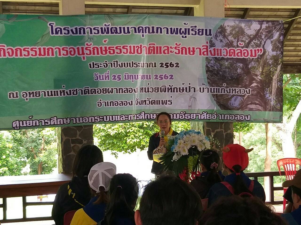 วันที่ 25 มิ.ย.2562 นางสาวรติรัตน์ อินต์ธะวิชัย ผอ.กศน.อำเภอลองและคณะครู กศน.ตำบล จัดโครงการพัฒนาคุณภาพผู้เรียน “กิจกรรมการอนุรักษ์ธรรมชาติและรักษาสิ่งแวดล้อม”ประจำปีงบประมาณ 2562 โดยกิจกรรมแบ่งออกเป็น 4 ฐานการเรียนรู้ 1.ฐานประวิติอุทยานแห่งชาติดอยผากลอง 2.ฐานป่าไม้และการอนุรักษ์ทรัพยกร ธรรมชาติ 3.ฐานแสดงพลังต่อต้านยาเสพติด 4.ฐานการเพาะกล้าไม้ กิจกรรมการปลูกป่าและกิจกรรมกลุ่มสัมพันธ์ ณ อุทยานแห่งชาติดอยผากลอง หน่วยพิทักษ์ป่า บ้านแก่งหลวง อำเภอลอง จ.แพร่