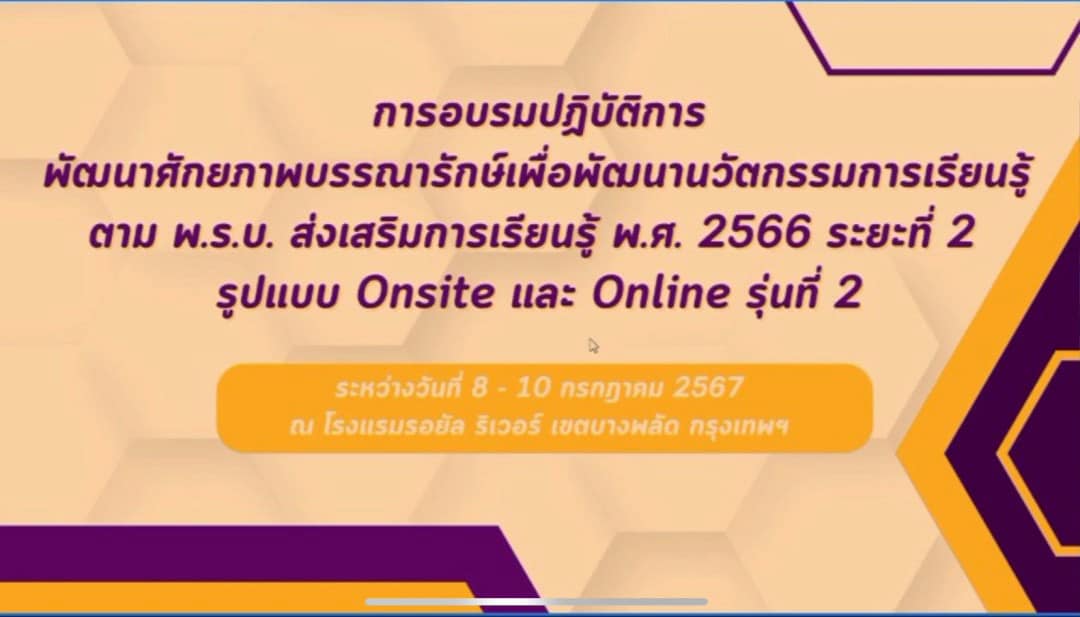 นางสาวเสาวนีย์ ชาพัฒิพงศ์ ผอ.กศน.อำเภอเมืองแพร่ ปฏิบัติหน้าที่ ผอ.สกร.ระดับอำเภอเมืองแพร่ รักษาการในตำแหน่ง ผอ.สกร.ระดับอำเภอลอง มอบหมายให้นายรัชตะ จิตรบุณย์ บรรณารักษ์ เข้าร่วมการอบรมแบบ online ปฏิบัติการพัฒนาศักยภาพบรรณารักษ์เพื่อพัฒนานวัตกรรมการเรียนรู้ตาม พ.ร.บ.ส่งเสริมการเรียนรู้ พ.ศ.๒๕๖๖ ระยะที่ ๒ รุ่นที่ ๒ ระหว่างวันที่ ๘-๑๐ กรกฎาคม ๒๕๖๗