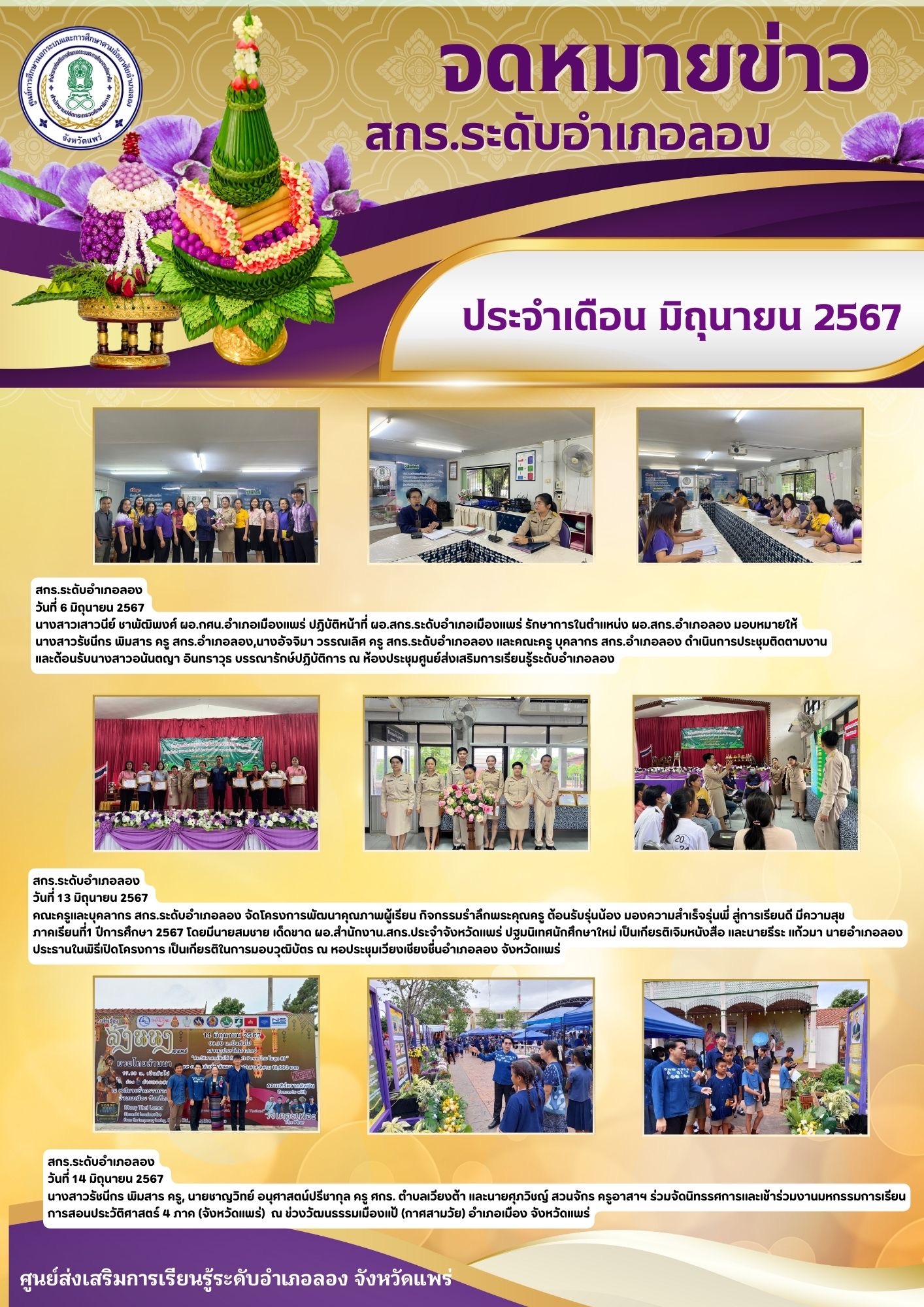 สรุปผลการดำเนินงาน กศน.อำเภอลอง ประจำเดือน มิถุนายน 2567