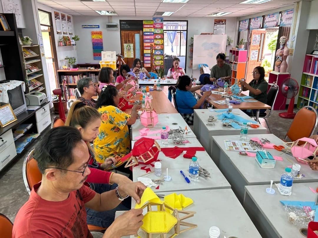 นางสาวเสาวนีย์ ชาพัฒิพงศ์ ผอ.กศน.อำเภอเมืองแพร่ ปฏิบัติหน้าที่ ผอ.สกร.ระดับอำเภอเมืองแพร่ รักษาการในตำแหน่ง ผอ.สกร.ระดับอำเภอลอง มอบหมายให้ นางขวัญวลี วงศ์ดาว จัดโครงการการจัดการศึกษาเพื่อพัฒนาสังคมและชุมชน กิจกรรมฝึกอบรมประชาชนเชิงปฏิบัติการ (ด้านศิลปวัฒนธรรม กิจกรรมอบรมเชิงปฏิบัติการการทำโคมล้านนา) ในวันที่ 6 สิงหาคม 2567 ณ ศกร.ระดับตำบลหัวทุ่ง อำเภอลอง จังหวัดแพร่ โดยมี ว่าที่ร้อยตรีหญิงสุกัลยา ค้าไม้ ครู กศน.ตำบลแม่ปาน และนางสาวณัฐริกา รินทะวงศ์ ครู กศน. ตำบลบ่อเหล็กลอง ร่วมเป็นวิทยากร