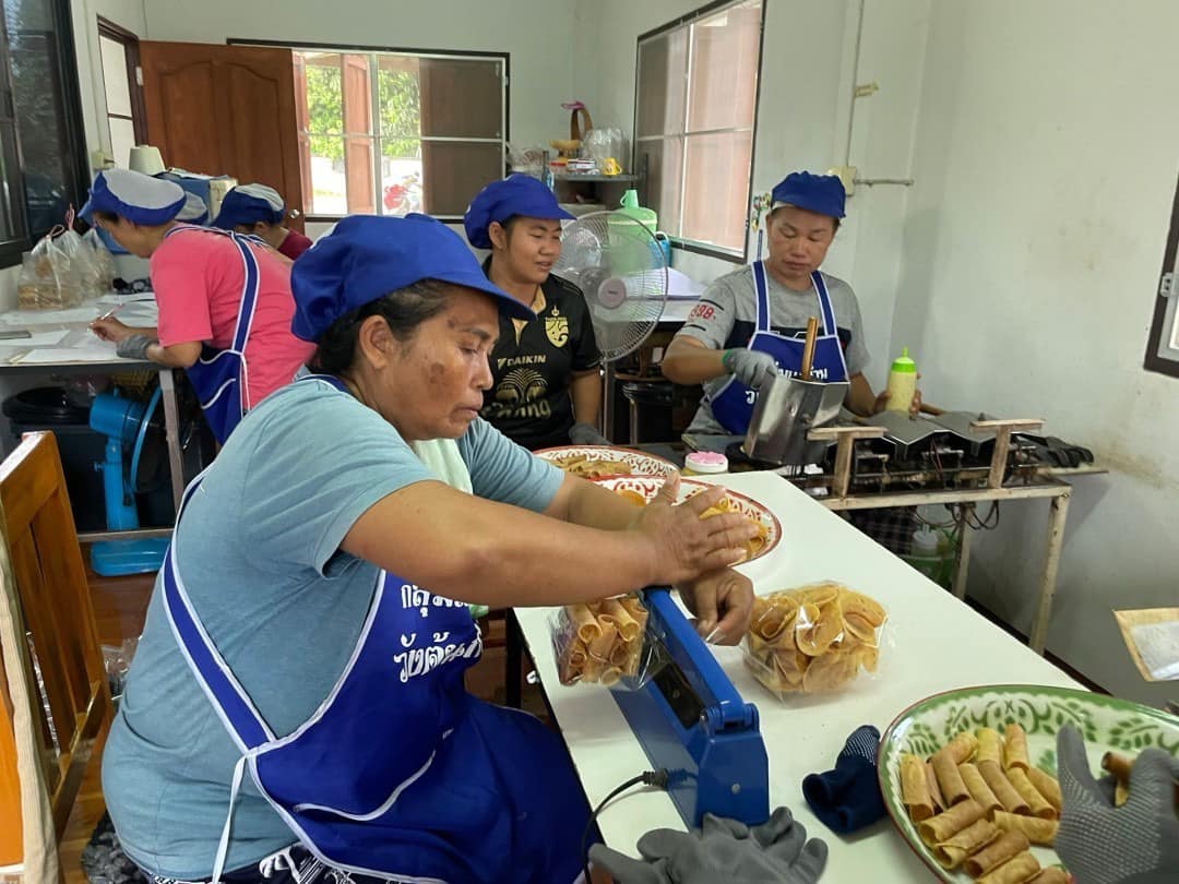 นางสาวเสาวนีย์ ชาพัฒิพงศ์ ผอ.กศน.อำเภอเมืองแพร่ ปฏิบัติหน้าที่ ผอ.สกร.ระดับอำเภอเมืองแพร่ รักษาการในตำแหน่ง ผอ.สกร.ระดับอำเภอลอง มอบหมายให้ นางสาววิยดา เกตุเอี่ยม ครู กศน.ตำบลปากกาง จัดการศึกษาต่อเนื่องรูปแบบกลุ่มสนใจ หลักสูตรวิชาการทำขนมทองม้วนและทองพับ จำนวน 10 ชั่วโมง สถานที่จัด ณ ศาลาอเนกประสงค์บ้านวังต้นเกลือ หมู่ที่ 7 ตำบลปากกาง อำเภอลอง จังหวัดแพร่ ระหว่างวันที่ 6 สิงหาคม พ.ศ.2567 ถึงวันที่ 7 สิงหาคม พ.ศ.2567 วิทยากรนางพลับพลึง ตาบัว เพื่อขับเคลื่อนการดำเนินงานโครงการออมสิน – สกร. สร้างงานให้เป็นเงินประจำปี 2567 โดยมีนายศุภวิชญ์ สวนจักร ครูอาสาสมัคร นิเทศติดตามการจัดกิจกรรม