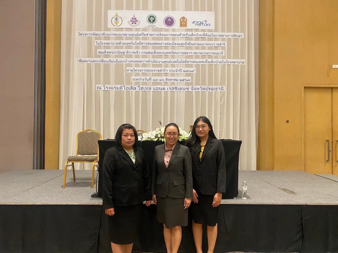 วันที่ 14-16 สิงหาคม พ.ศ.2567 นางสาวเสาวนีย์ ชาพัฒิพงศ์ ผอ.กศน.อำเภอเมืองแพร่ ปฏิบัติหน้าที่ ผอ.สกร.อำเภอเมืองแพร่ รักษาการในตำแหน่ง ผอ.สกร.อำเภอลอง มอบหมายให้ นางสาวอนันตญา อินทราวุธ บรรณารักษ์ปฏิบัติการ เข้าร่วมสัมมนาแลกเปลี่ยนเรียนรู้และนำเสนอผลการดำเนินงานศูนย์เทคโนโลยีสารสนเทศเพื่อเด็กป่วยในโรงพยาบาลตามโครงการพระราชดำริฯ ประจำปีงบประมาณ2567 ณ โรงแรมดิไอเดิล โฮเทล แอนด์ เรสซิเดนซ์ จังหวัดปทุมธานี