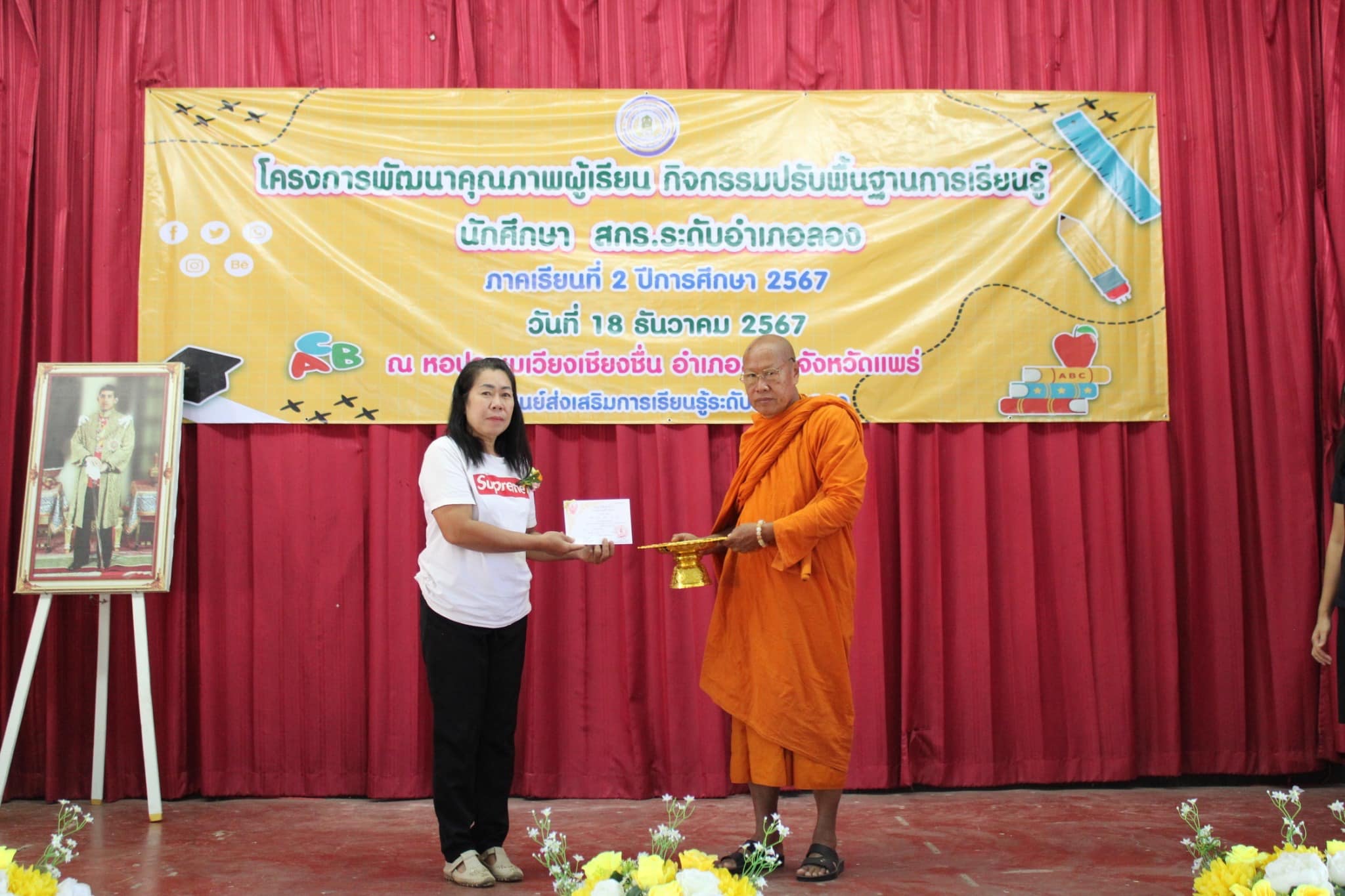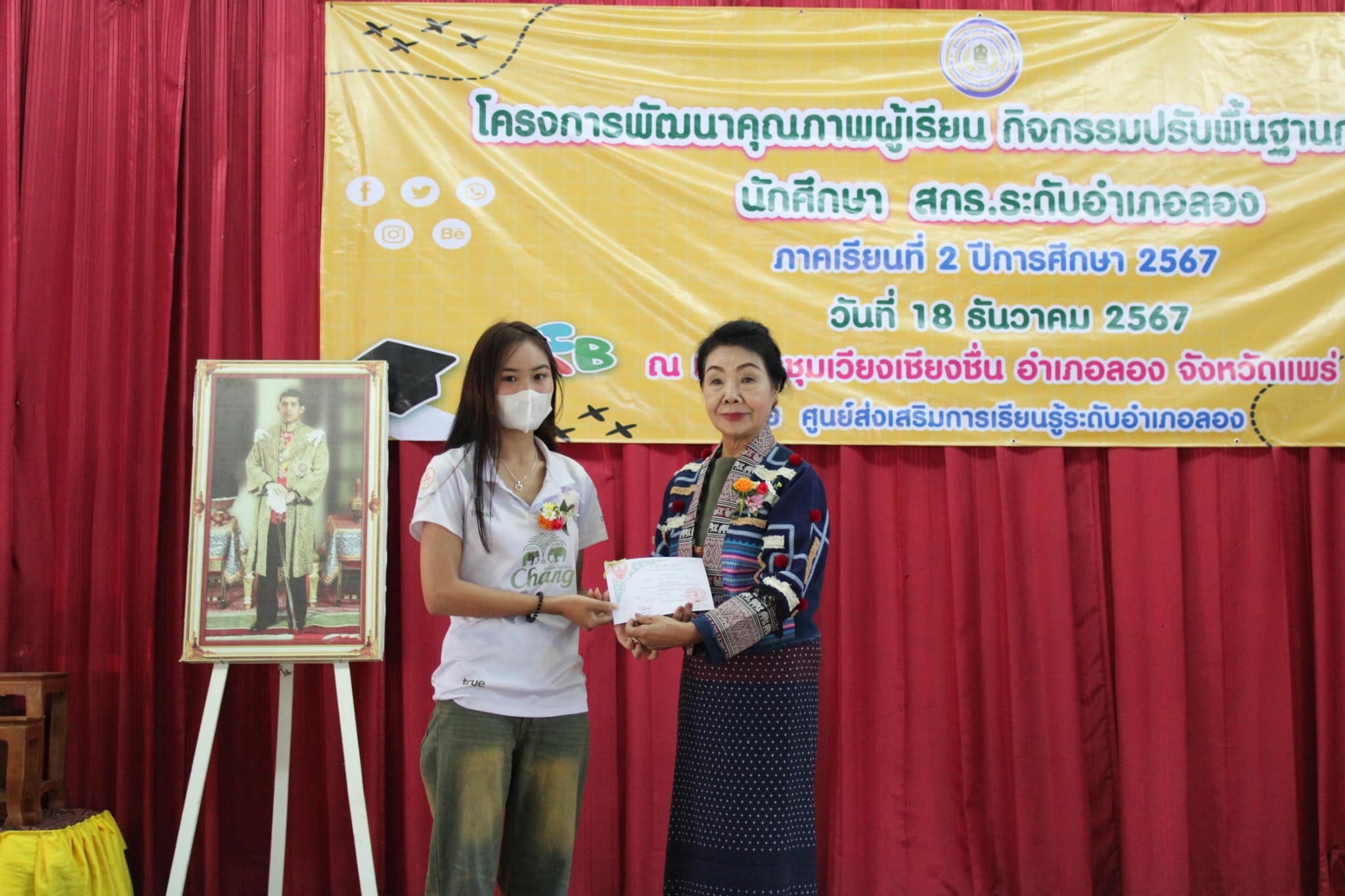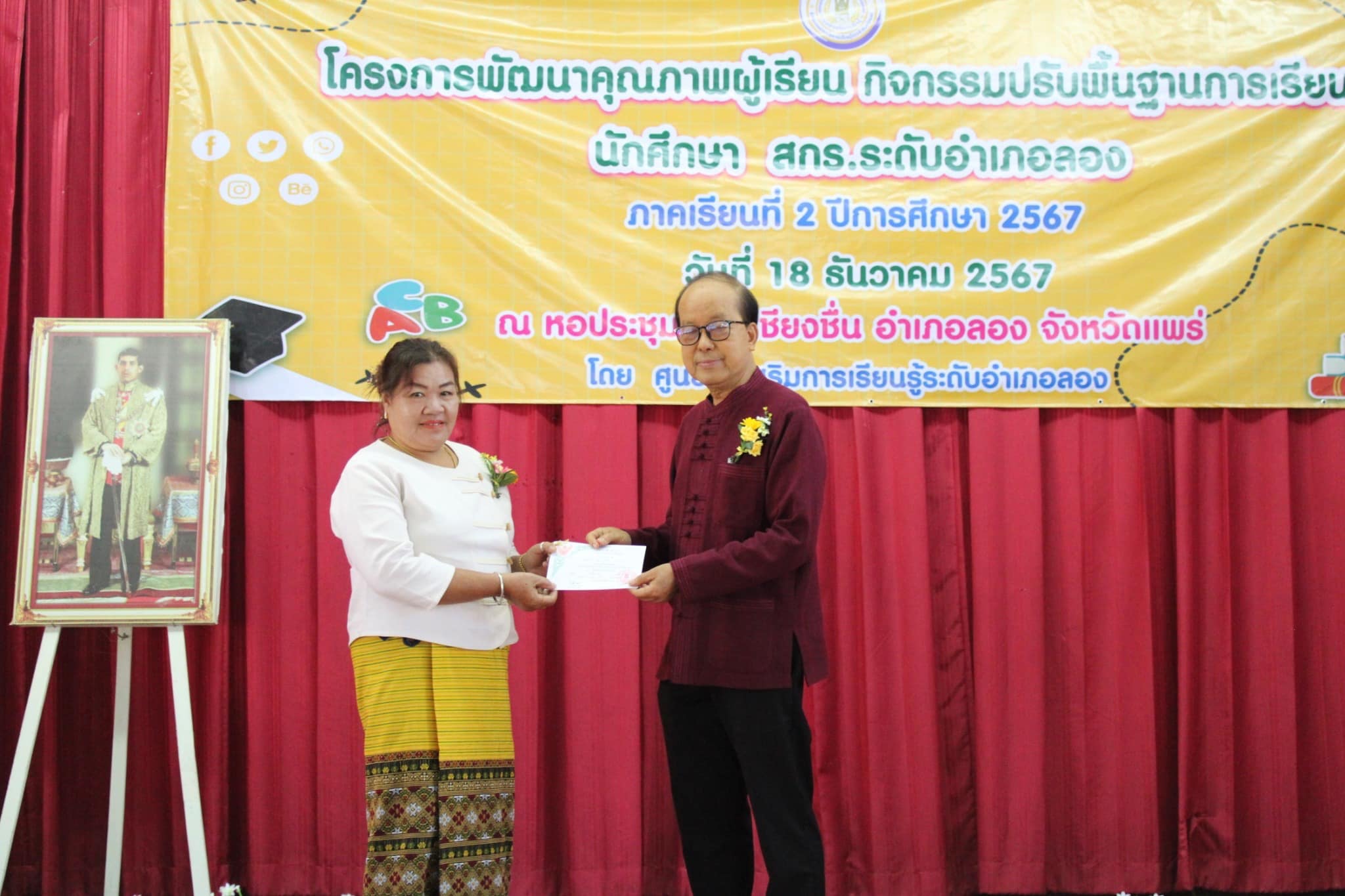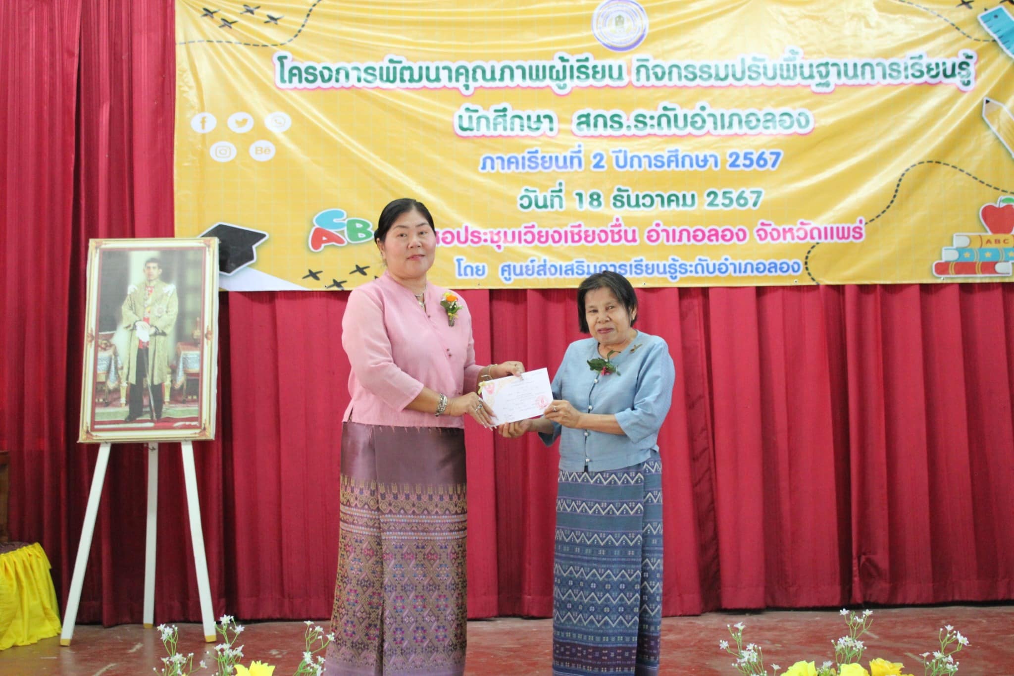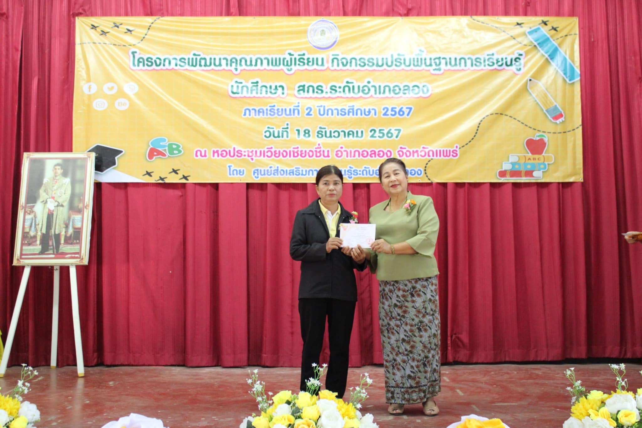 วันที่ 18 ธันวาคม พ.ศ.2567 นำโดยนางอัจจิมา วรรณเลิศ ครู รักษาการในตำแหน่ง ผอ.สกร.ระดับอำเภอลอง และคณะครู บุคลากร สกร.ระดับอำเภอลอง จัดโครงการพัฒนาคุณภาพผู้เรียน กิจกรรมปรับพื้นฐานการเรียนรู้ นักศึกษา สกร.ระดับอำเภอลอง ภาคเรียนที่ 2/2567 โดยมีฐานการเรียนรู้ ดังนี้ ฐานที่ 1 ฐานการเรียนรู้สู่ความสำเร็จ ฐานที่ 2 เปิดบ้านการเรียนรู้สู่ สกร. ฐานที่ 3 STEM ฉลาดคิดวิศวกรออกแบบ ฐานที่ 4 Speed Number ฐานที่ 5 อ่านให้รู้ ดูให้เพลิน โดยมีนายธีระ แก้วมา นายอำเภอลอง เป็นประธานในพิธี ณ หอประชุมเวียงเชียงชื่นอำเภอลอง จังหวัดแพร่