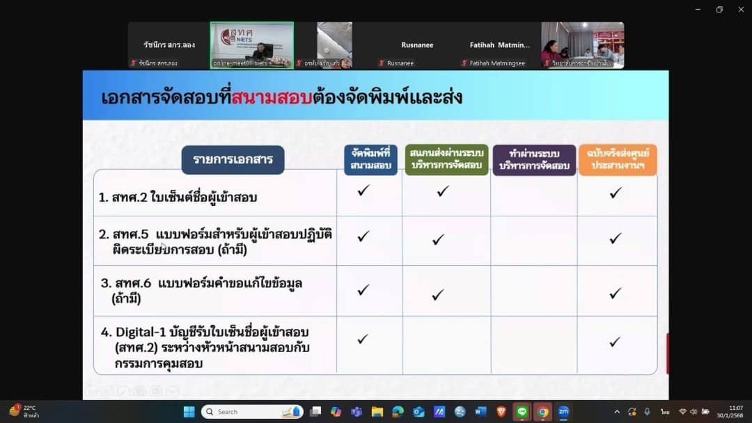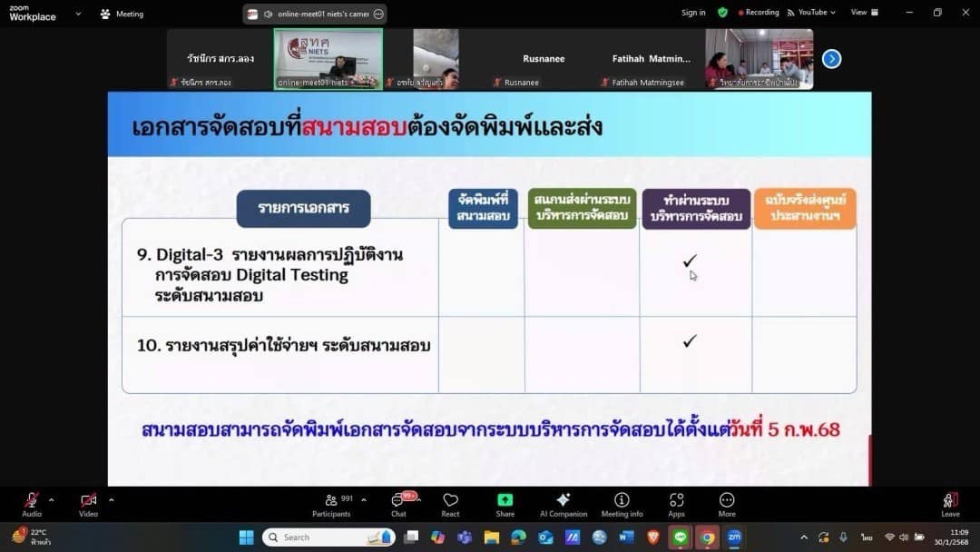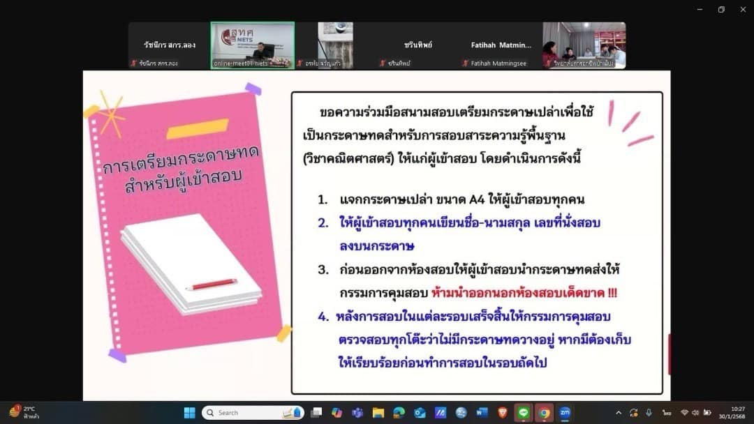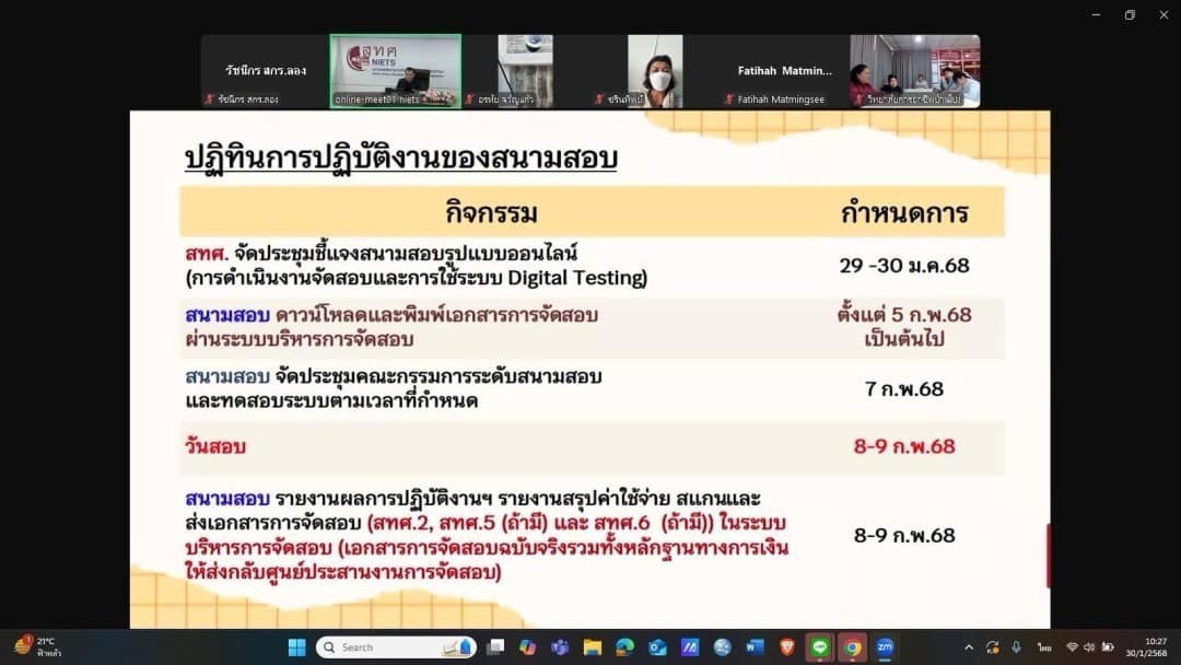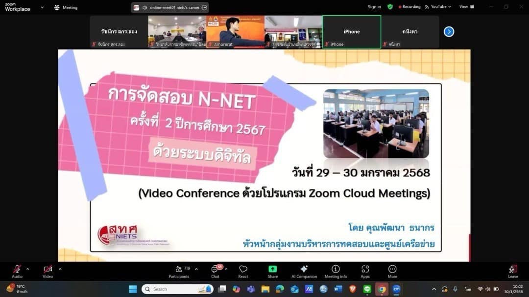 นางอัจจิมา วรรณเลิศ ตำแหน่ง ครู รักษาการในตำแหน่ง ผอ.สกร.ระดับอำเภอลอง นางสาวรัชนีกร พิมสาร ครู และนายศุภวิชญ์ สวนจักร ครูอาสาสมัครฯ เข้าร่วมประชุมชี้แจงคณะทำงานระดับศูนย์สอบการจัดสอบ N-NET ด้วยระบบ Digital Testing ครั้งที่ 2 ปีการศึกษา 2567 ที่จัดสอบในระหว่างวันที่ 8-9 กุมภาพันธ์ 2568 ผ่านระบบการประชุมออนไลน์ด้วย Zoom Cloud Meetings