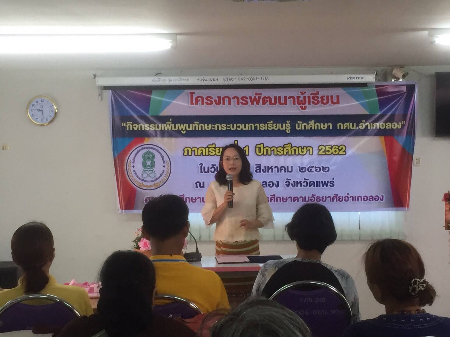 นางสาวรติรัตน์ อินต์ธะวิชัย ผู้อำนวยการ กศน.อำเภอลอง มอบหมายให้ คณะครู กศน.จัดโครงการพัฒนาผู้เรียน “กิจกรรมเพิ่มพูนทักษะกระบวนการเรียนรู้ นักศึกษา กศน.อำเภอลอง” ภาคเรียนที่ 1 ปีการศึกษา 2562 กิจกรรมมี 4 ฐานการเรียนรู้ ได้แก่
