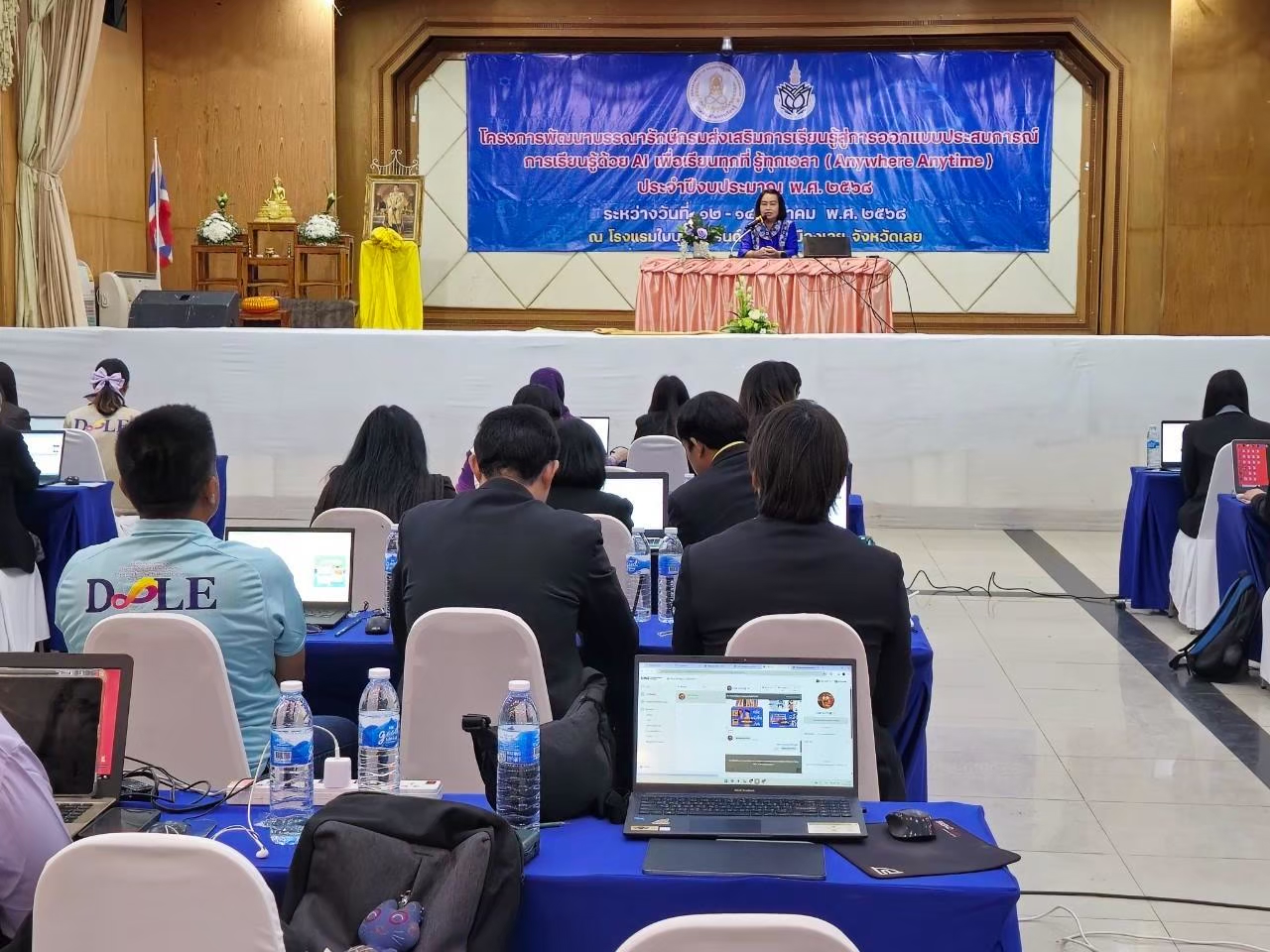 วันที่ 12-14 มีนาคม พ.ศ.2568 นางอัจจิมา วรรณเลิศ ครู รักษาการในตำแหน่ง ผอ.สกร.ระดับอำเภอลอง มอบหมายให้นายรัชตะ จิตรบุณย์ บรรณารักษ์ เข้ารับการอบรมโครงการพัฒนาบรรณารักษ์ กรมส่งเสริมการเรียนรู้สู่การออกแบบประสบการณ์การเรียนรู้ด้วย AI เพื่อเรียนทุกที่ รู้ทุกเวลา (Anywhere Anytime) ประจำปีงบประมาณ พ.ศ. ๒๕๖๘ ณ ห้องประชุมโรงแรมใบบุญ แกรนด์ โฮเทล (Baiboon Grand Hotel) อำเภอเมือง จังหวัดเลย