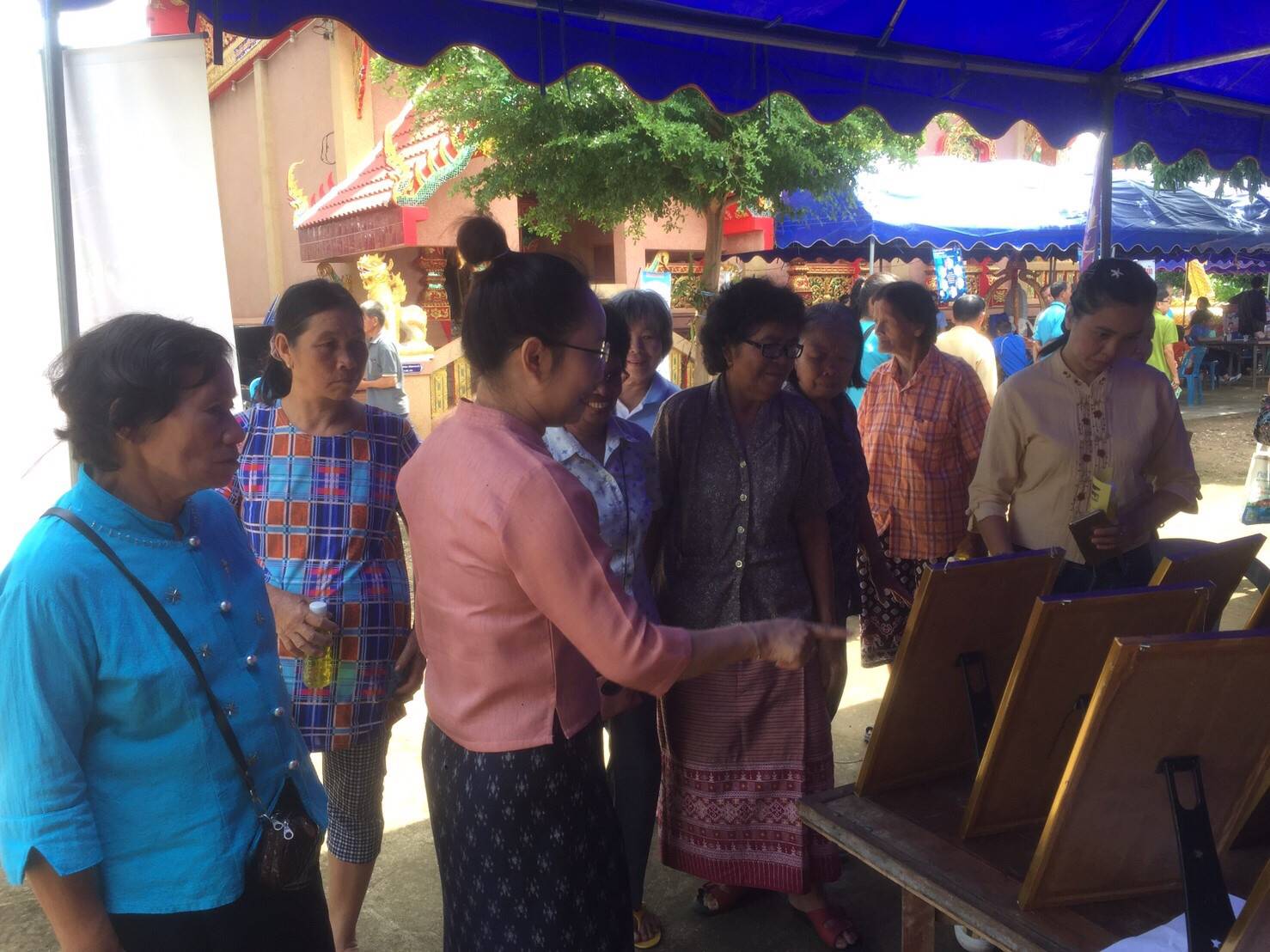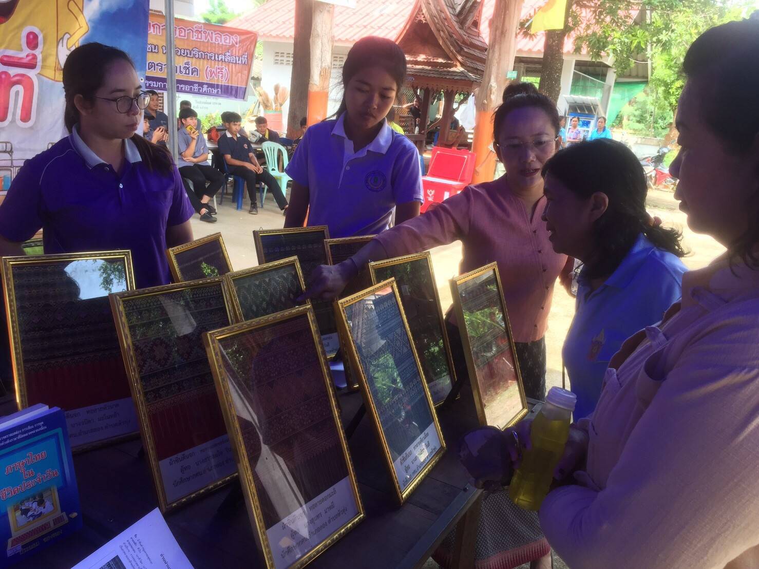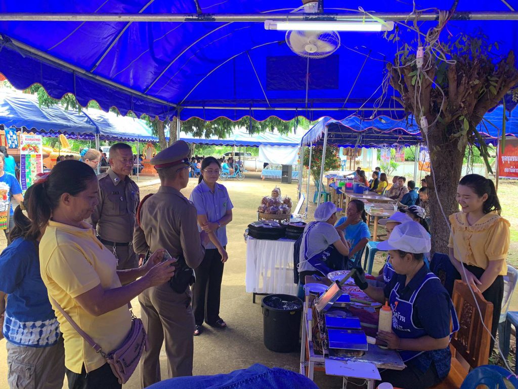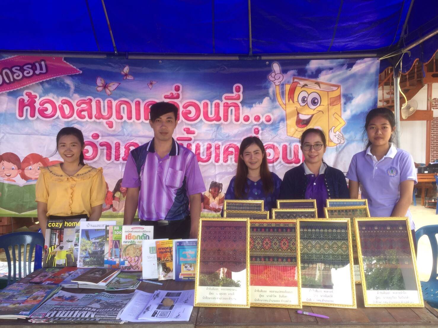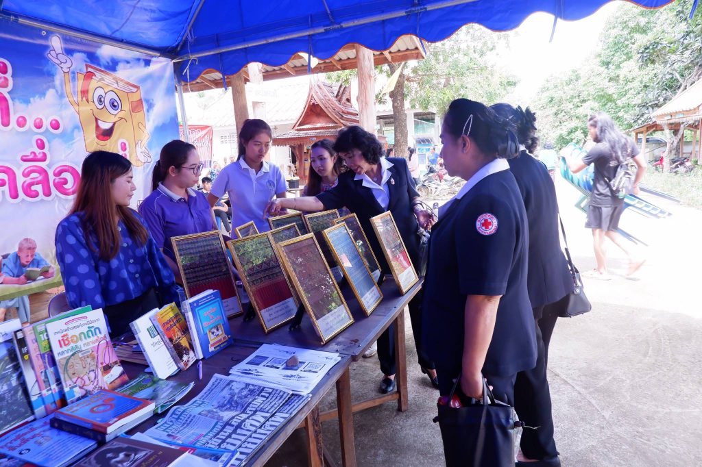 นางสาวรติรัตน์ อินต์ธะวิชัย ผอ.กศน.อำเภอลอง มอบหมายให้ ครูกศน.ตำบลปากกาง และบรรณารักษ์ห้องสมุดประชาชน “เฉลิมราชกุมารี” อำเภอลอง ร่วมจัดกิจกรรมอำเภอยิ้ม…เคลื่อนที่ ณ วัดวังต้นเกลือ หมู่ที่7 ตำบลปากกาง อ.ลอง โดยห้องสมุดฯ นำกิจกรรมการอ่านลายผ้า ผ้าตีนจกเมืองลองแบบต่างๆ และครูกศน.ตำบล ส่งเสริมฝึกอาชีพการทำทองม้วนให้แก่ประชาชน