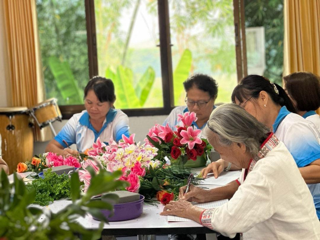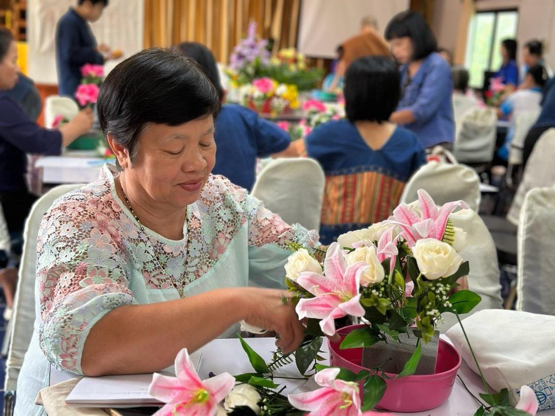 นางอัจจิมา วรรณเลิศ ครู รักษาการในตำแหน่ง ผอ.สกร.ระดับอำเภอลอง มอบหมายให้ คณะครูและบุคลากร สกร.ระดับอำเภอลอง จัดโครงการเสริมสร้างพัฒนาคุณภาพชีวิตและส่งเสริมอาชีพสำหรับผู้สูงอายุ สกร.ระดับอำเภอลอง ประจำปีงบประมาณ พ.ศ. 2568 การจัดการศึกษาเพื่อพัฒนาตนเอง (ระยะที่3) ให้ความรู้ ในเรื่องการจัดดอกไม้ชั้นพื้นฐาน วิทยากรโดย พระจิณณวิชญ์ นิกะดานนท์ ณ เทศบาลตำบลแม่ปาน อำเภอลอง จังหวัดแพร่