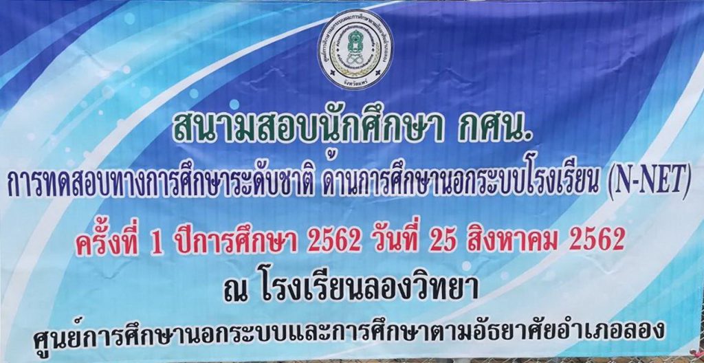 สนามสอบ การทดสอบทางการศึกษานอกระบบโรงเรียน (N-NET)วันที่ 25 สิงหาคม 2562 ณโรงเรียนลองวิทยา โดย มีนายอนุรักษ์ วงศ์ชัยพาณิชย์ ผอ. โรงเรียนลองวิทยา เป็นหัวหน้าสนามสอบ นางสาวรติรัตน์ อินต์ธะวิชัย ผอ.กศน.อำเภอลอง และนางสาวรัชนีกร พิสาร เป็นตัวแทนศูนย์สอบเปอร์เซ็นต์ผู้เข้าสอบประถมศึกษา 100 % มัธยมศึกษาตอนต้น 95.24% มัธยมศึกษาตอนปลาย 91.67% รวม เปอร์เซ็นต์เข้าสอบ 92.86%