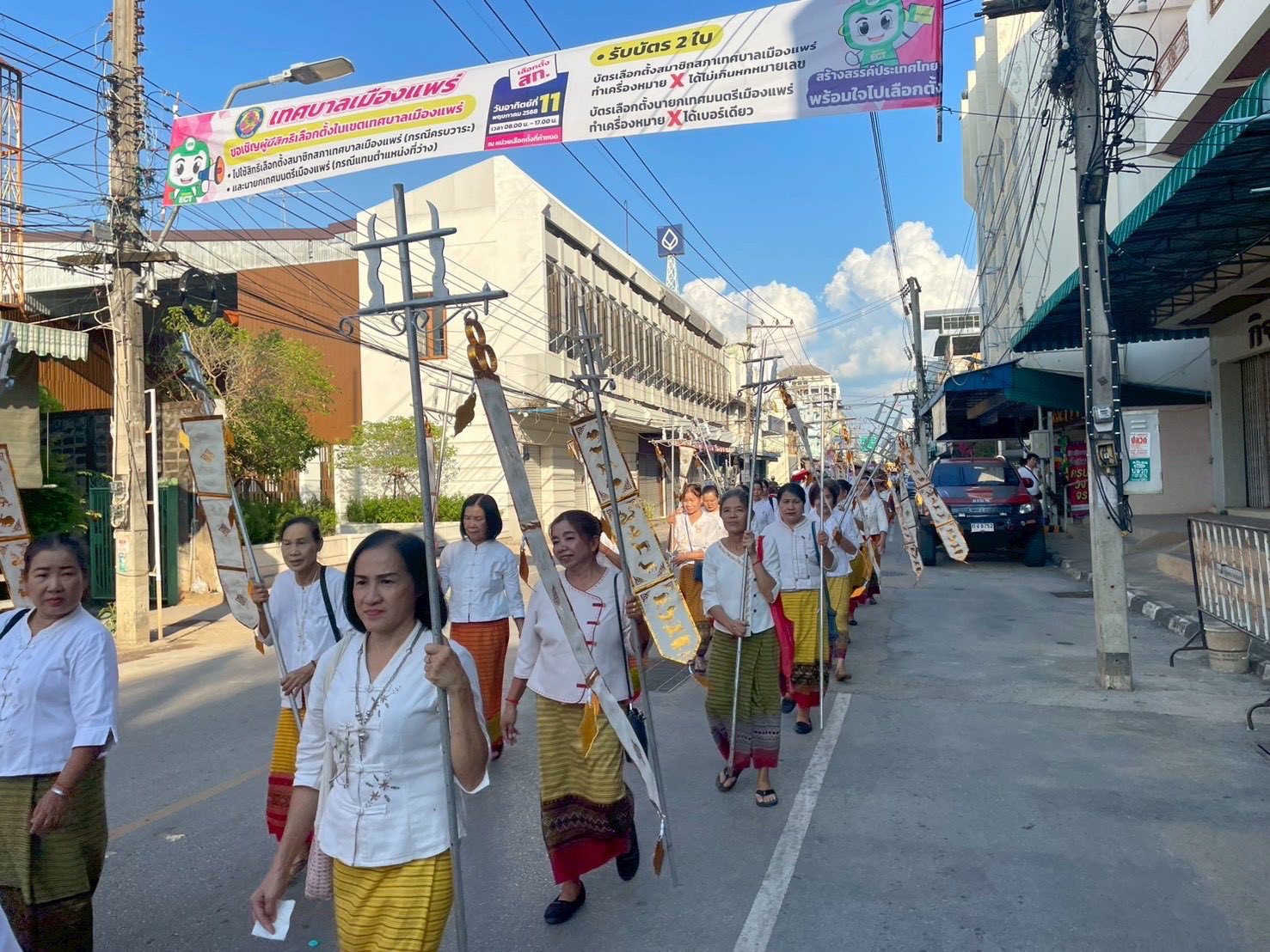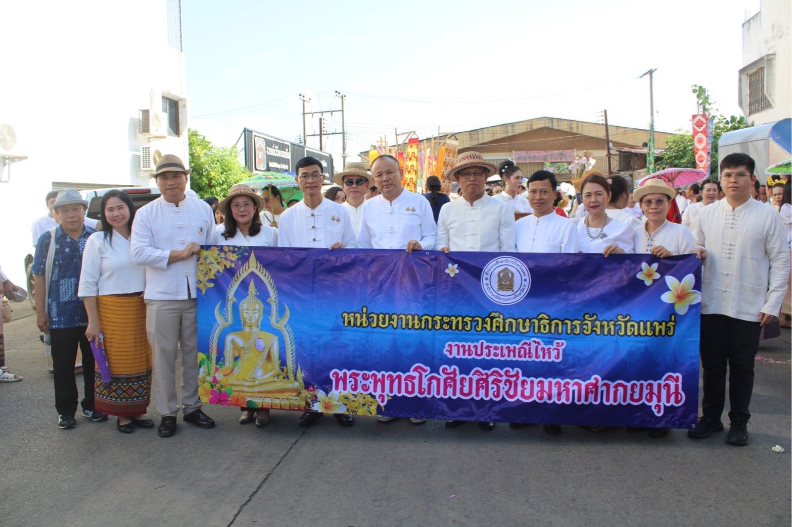 นางอัจจิมา วรรณเลิศ ครู รักษาการในตำแหน่ง ผอ.สกร.ระดับอำเภอลอง มอบหมายให้คณะครู และบุคลากร สกร.ระดับอำเภอลอง เข้าร่วมขบวนแห่เครื่องสักการะไหว้พระพุทธโกศัยศิริชัยมหาศากยมุนี พระคู่บ้านสู่เมืองแพร่ และงานส่งเสริมพระพุทธศาสนา เนื่องในวันวิสาขบูชาประจำปี 2568 โดยมีหัวหน้าส่วนราชการ หัวหน้าหน่วยงาน ปลัดอำเภอ ผู้บริหารองค์กรปกครองส่วนท้องถิ่น พนักงาน ลูกจ้างฯ กำนัน ผู้ใหญ่บ้าน และประชาชน อำเภอลอง เข้าร่วมพิธีฯ ณ วัดพระบาทมิ่งเมืองวรวิหาร อ.เมืองเเพร่ จ.แพร่