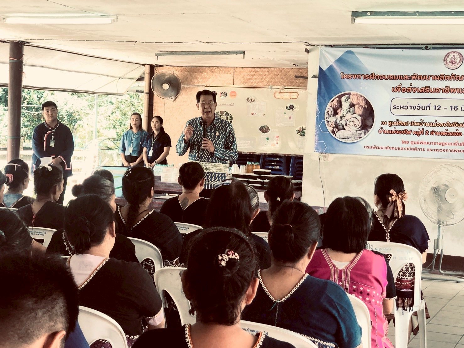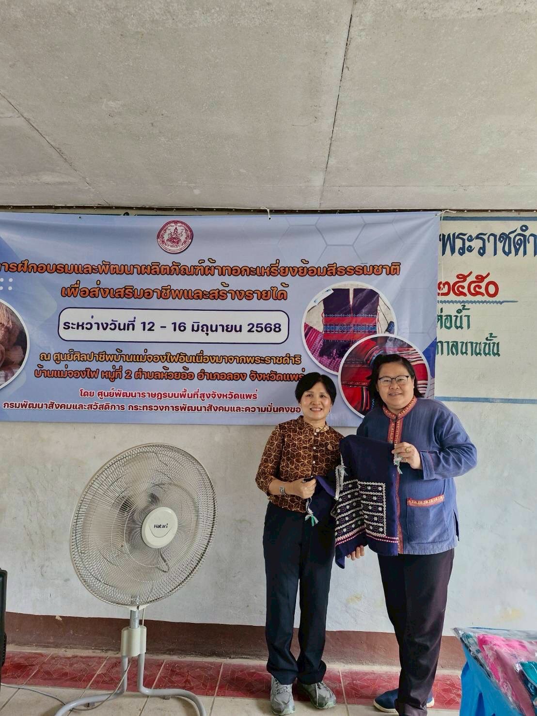 นางอัจจิมา วรรณเลิศ ครู รักษาการในตำแหน่ง ผอ.สกร.ระดับอำเภอลอง มอบหมายให้นางสาวลัดดาวัลย์ ซุ่นฮะ ครูผสศช.บ้านแม่จองไฟ ร่วมพิธีเปิดโครงการฝึกอบรมและพัฒนาผลิผตภัณฑ์ผ้าทอกะเหรี่ยงย้อมสีธรรมชาติเพื่อส่งเสริมอาชีพและสร้างรายได้ ของกลุ่มประชาชนบ้านแม่จองไฟ ในระหว่างวันที่12-16 มิถุนายน 2568 ณ ศูนย์ฝึกศิลปาชีพบ้านแม่จองไฟ โดยศูนย์พัฒนาราษฏรบนพื้นที่สูง จังหวัดแพร่ โดย มีนายสมชัย เลิศประสิทธิพันธุ์ ผู้ว่าราชการจังหวัดแพร่ เป็นประธานพิธีเปิดในครั้งนี้