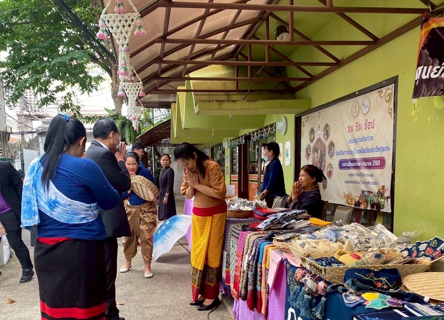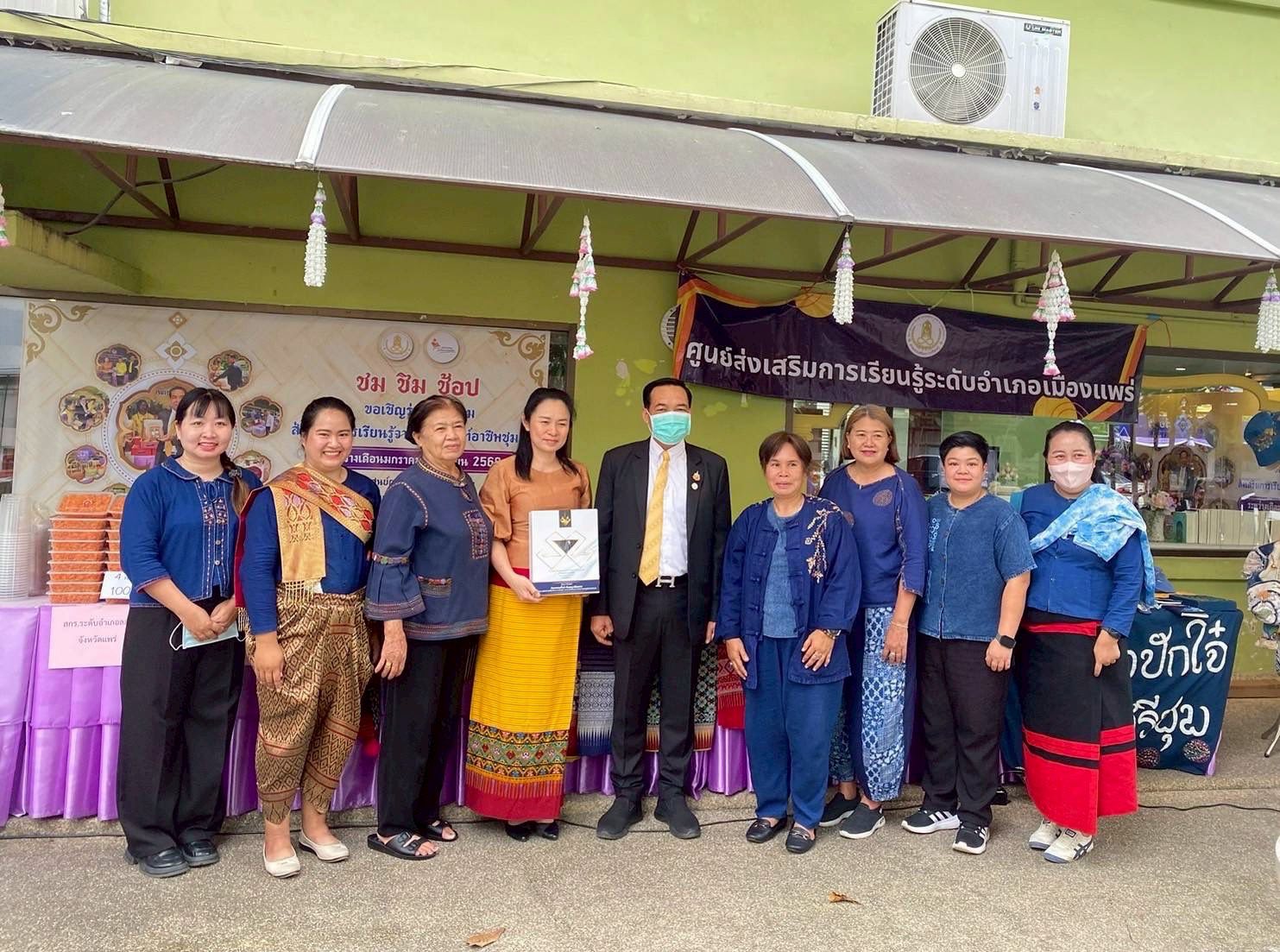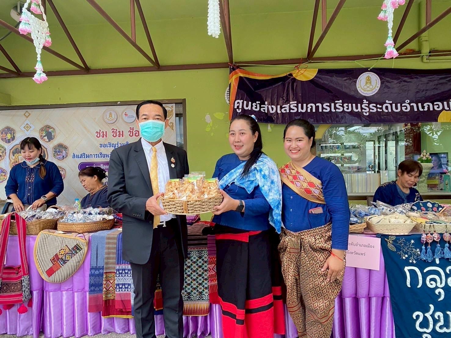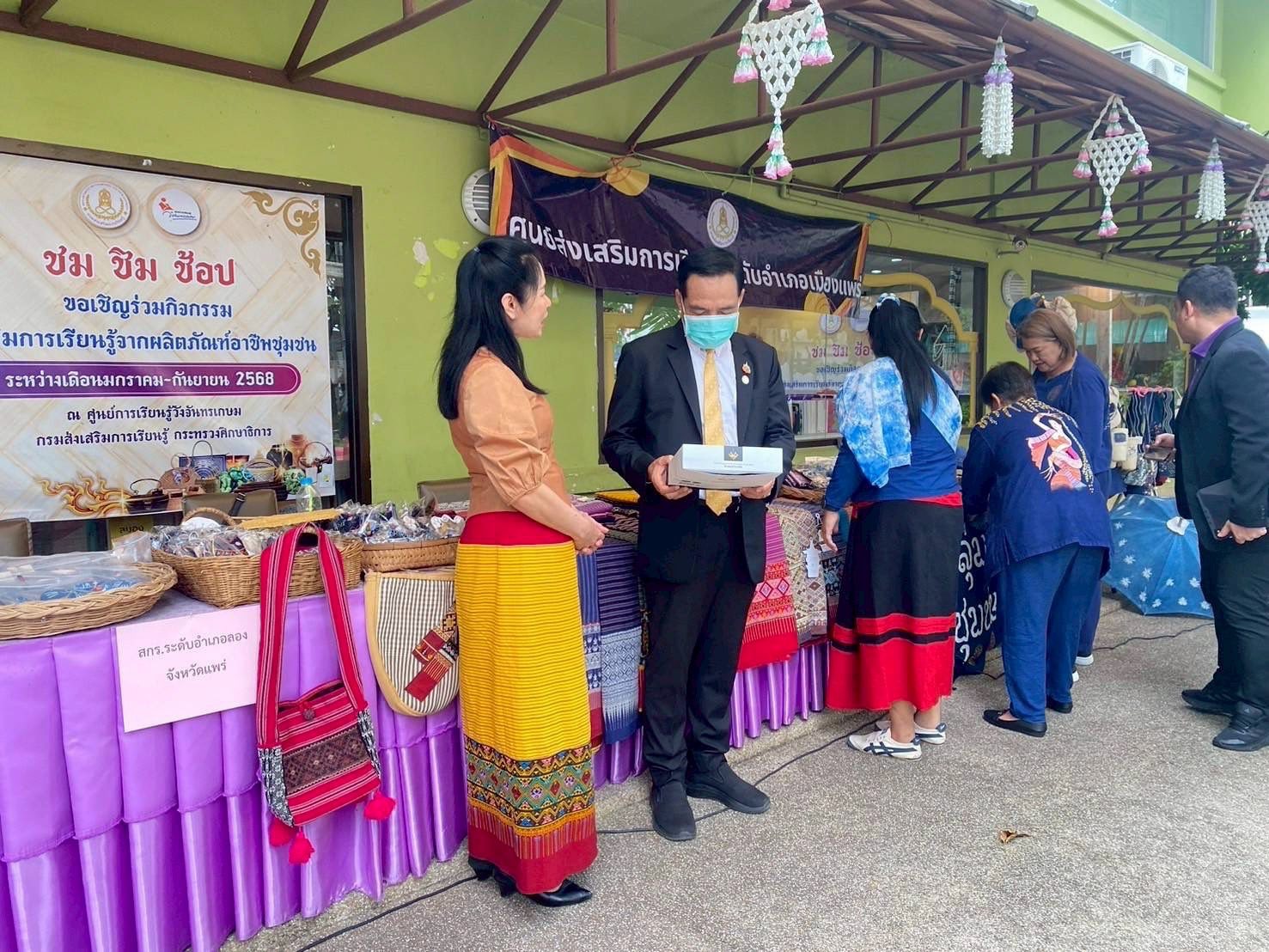 ท่านธนากร ดอนเหนือ เยี่ยมชมและให้กำลังใจคณะครู เจ้าหน้าที่ ผู้แทนกลุ่มผลิตภัณฑ์อาชีพชุมชน ของจังหวัดแพร่ โดย สกร.อำเภอเมืองแพร่ และ สกร.อำเภอลอง จัดแสดงและจำหน่ายสินค้า ผลิตภัณฑ์ชุมชนต้นแบบ ในโครงการ ชม ชิม ช้อป ส่งเสริมการเรียนรู้จากผลิตภัณฑ์อาชีพชุมชน ระหว่างเดือนมกราคม-กันยายน 2568 ณ ศูนย์เรียนรู้วังจันทรเกษม กรมส่งเสริมการเรียนรู้ กระทรวงศึกษาธิการ กรุงเทพมหานคร