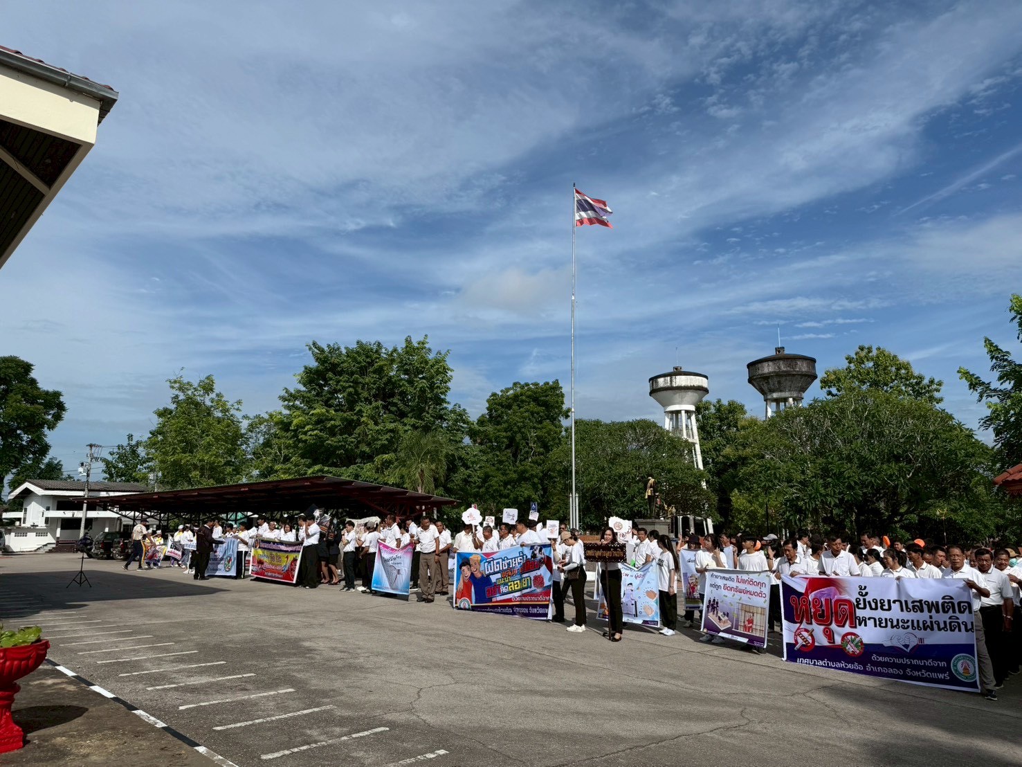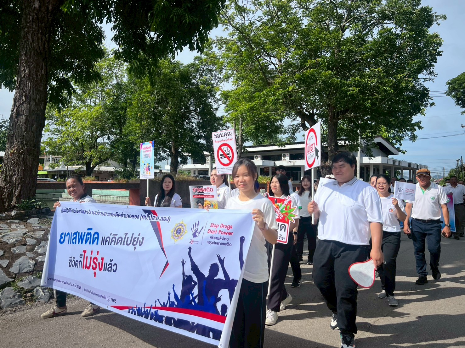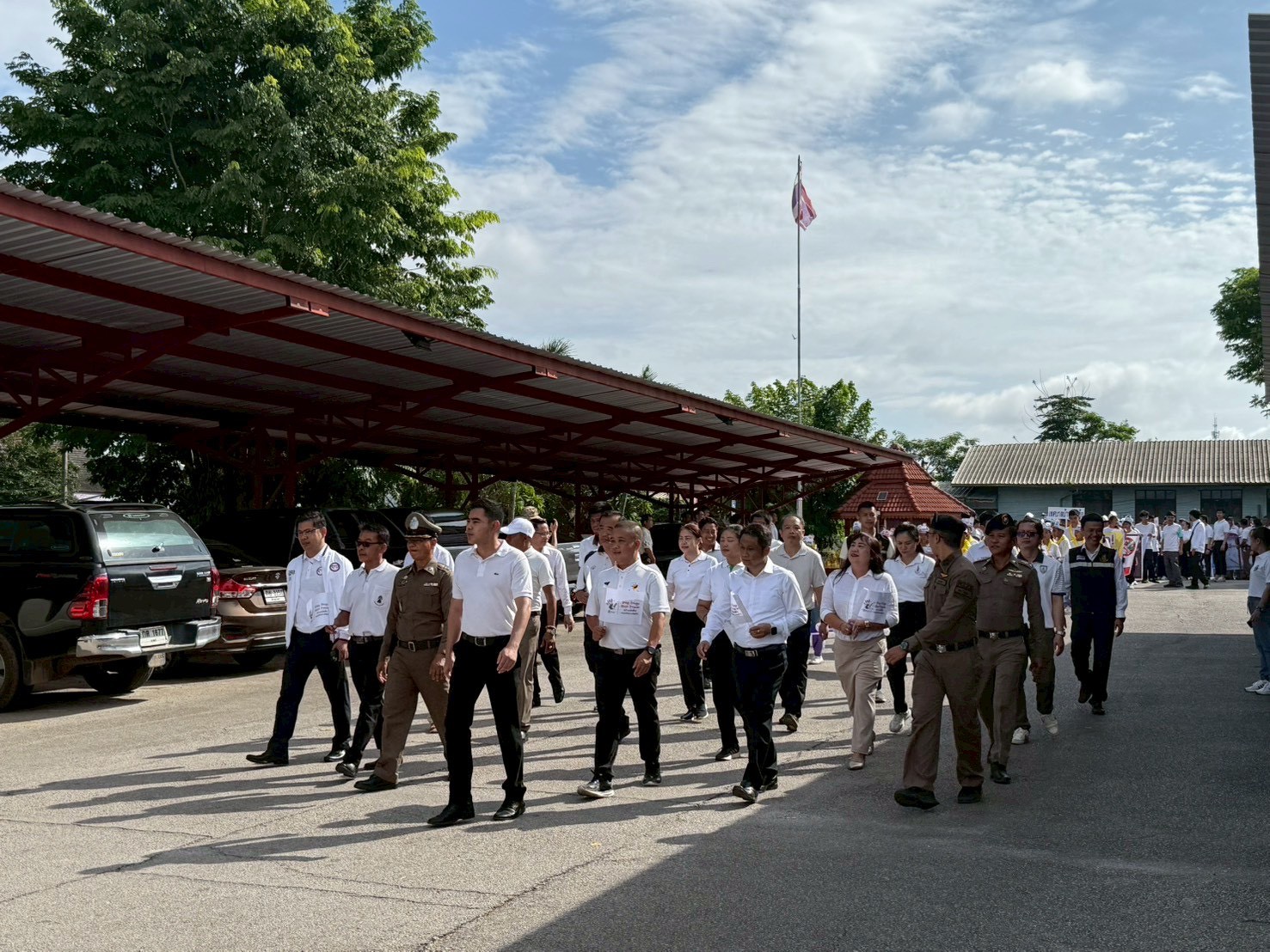 นางอัจจิมา วรรณเลิศ ครู รักษาการในตำแหน่ง ผอ.สกร.ระดับอำเภอลอง,นายภาสกร ถาเงิน ครู ศกร. และนายศุภวิชญ์ สวนจักร ครู ศกร. เข้าร่วมกิจกรรมเดินรณรงค์ประชาสัมพันธ์ เนื่องในวันต่อต้านยาเสพติดโลก (๒๖ มิถุนายน) อำเภอลอง จังหวัดแพร่ ประจำปี ๒๕๖๘ “Stop Drugs Start Power สร้างพลังไทย หยุดภัยยาเสพติด” ณ ลานหน้าที่ว่าการอำเภอลอง จังหวัดแพร่