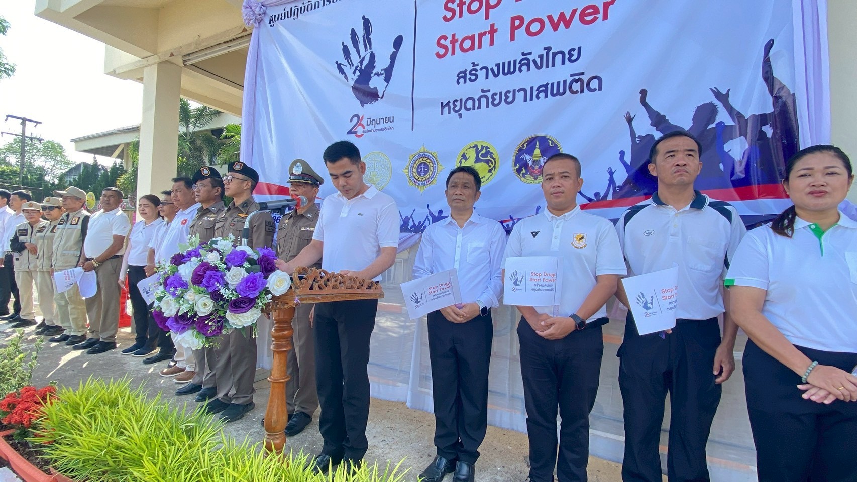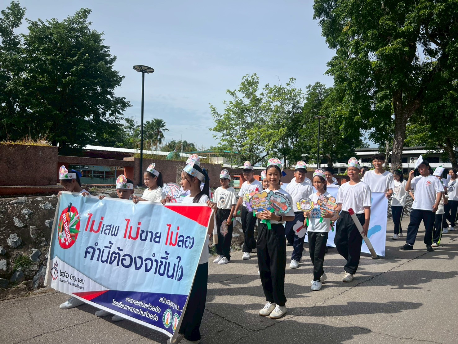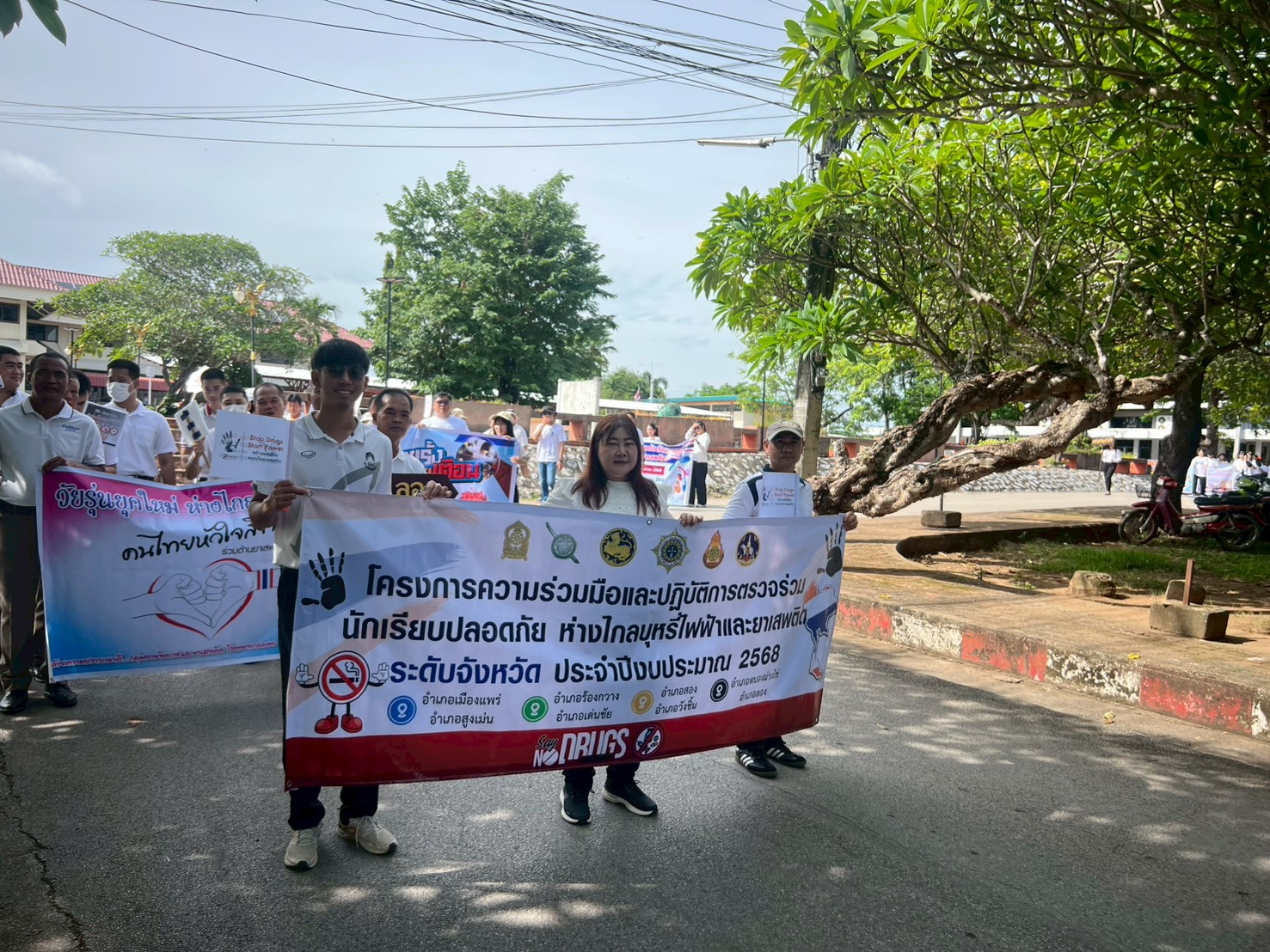 นางอัจจิมา วรรณเลิศ ครู รักษาการในตำแหน่ง ผอ.สกร.ระดับอำเภอลอง,นายภาสกร ถาเงิน ครู ศกร. และนายศุภวิชญ์ สวนจักร ครู ศกร. เข้าร่วมกิจกรรมเดินรณรงค์ประชาสัมพันธ์ เนื่องในวันต่อต้านยาเสพติดโลก (๒๖ มิถุนายน) อำเภอลอง จังหวัดแพร่ ประจำปี ๒๕๖๘ “Stop Drugs Start Power สร้างพลังไทย หยุดภัยยาเสพติด” ณ ลานหน้าที่ว่าการอำเภอลอง จังหวัดแพร่