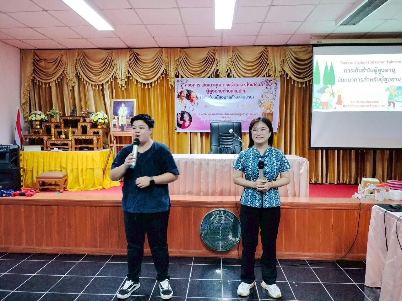 วันที่ 27 มิถุนายน 2568 นางอัจจิมา วรรณเลิศ ครู รักษาการในตำแหน่ง ผอ.สกร.ระดับอำเภอลอง มอบหมายให้ ว่าที่ร.ต.หญิง สุกัลยา ค้าไม้ ครูศูนย์การเรียนรู้ และนางสาวณัฐริกา รินทะวงศ์ ครูศูนย์การเรียนรู้ เป็นวิทยากรโครงการพัฒนาคุณภาพชีวิตและส่งเสริมอาชีพผู้สูงอายุตำบลแม่ปาน (โรงเรียนผู้สูงอายุตำบลแม่ปาน) ประปีปีงบประมาณ พ.ศ.2568 กิจกรรมการส่งเสริมการออกกำลังกาย โดยการเต้นรำและนันทนาการสำหรับผู้สูงอายุ ณ เทศบาลตำบลแม่ปาน อำเภอลอง จังหวัดแพร่