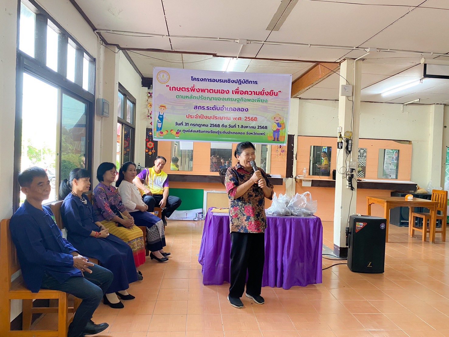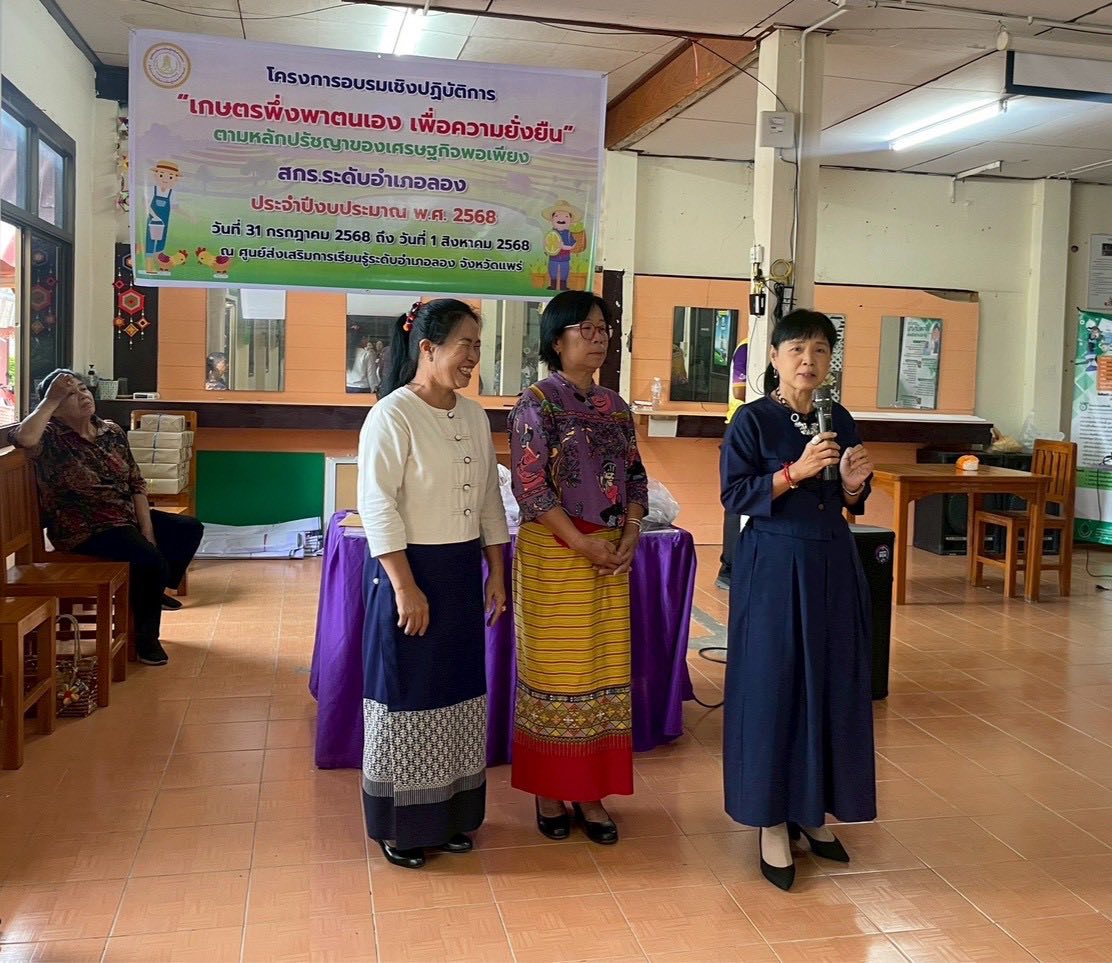นางอัจจิมา วรรณเลิศ ครูรักษาการในตำแหน่งผู้อำนวยการ สกร.ระดับอำเภอลอง มอบหมายให้นางสาวลัดดาวัลย์ ซุ่นฮะ ครูศูนย์การเรียนรู้ และคณะครู สกร.ระดับอำเภอลอง จัดโครงการอบรมเชิงปฏิบัติการ”เกษตรพึ่งพาตนเอง เพื่อความยั่งยืน” ตามหลักปรัชญาของเศรษฐกิจพอเพียง สกร.ระดับอำเภอลอง ประจำปีงบประมาณ พ.ศ.2568 ฐานที่1 นักรบใต้ดิน…กินดีมีประโยชน์ ฐานที่2 เส้นฝ้ายสายใยเมืองลอง ฐานที่3 พืชสารพัดประโยชน์ฐานที่4 ผักกินได้ ปลูกง่ายที่บ้าน ณ ศูนย์ส่งเสริมการเรียนรู้ระดับอำเภอลอง จังหวัดแพร่