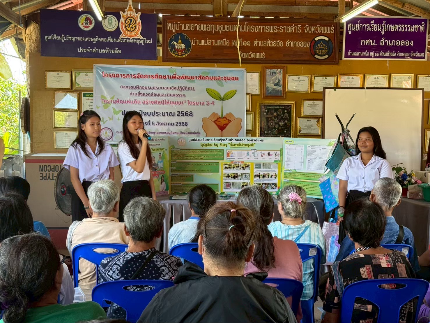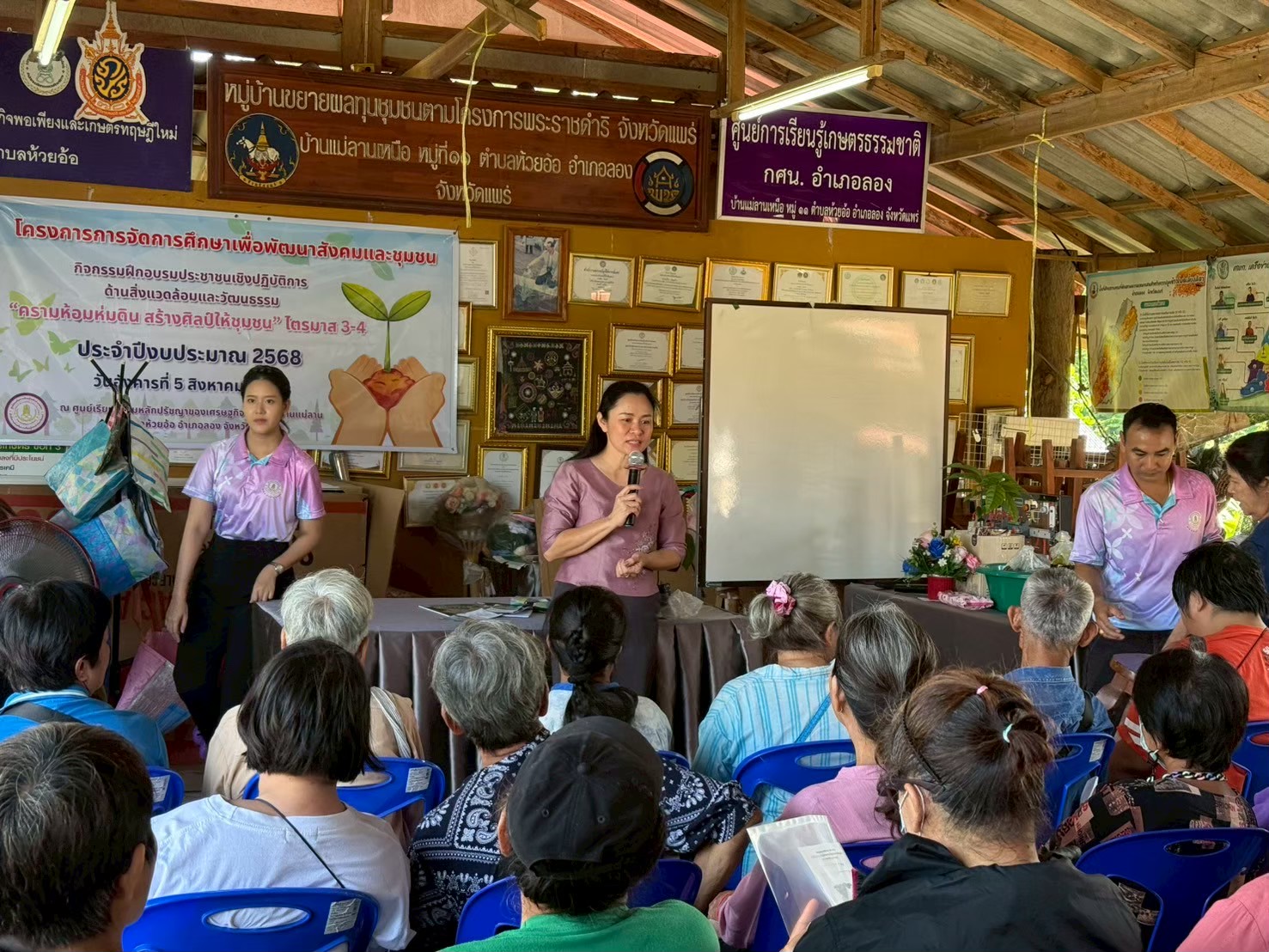 นำโดยนางอัจจิมา วรรณเลิศ ครู รักษาการในตำแหน่ง ผอ.สกร.ระดับอำเภอลอง ,นางสาวลาภิสรา ศิวาดำรงค์ ครูศูนย์การเรียนรู้ตำบลเวียงต้าและคณะครู บุคลากรสกร.ระดับอำเภอลอง จัดโครงการการจัดการศึกษาเพื่อพัฒนาสังคมและชุมชนกิจกรรมฝึกอบรมประชาชนเชิงปฏิบัติการ ด้านสิ่งแวดล้อมและวัฒนธรรม “ครามห้อมห่มดิน สร้างศิลป์ให้ชุมชน” ไตรมาส 3-4 ประจำปีงบประมาณ 2568 โดยมีฐานการเรียนรู้ ดังนี้ ฐานการเรียนรู้ที่ 1 การอนุรักษ์ห้อม ฐานการเรียนรู้ที่ 2 การเพาะปลูกห้อม ฐานการเรียนรู้ที่3 การสาธิตการย้อมห้อม มีผู้เข้าร่วมโครงการ จำนวน 51 คน โดยมีนายสุริยา ขันแก้ว นางแสงเงิน ปัญญาดี และนางอุไร เฉื่อยไธสง เป็นวิทยากรให้ความรู้ ณ ศูนย์เรียนรู้ตามหลักปรัชญาของเศรษฐกิจพอเพียงบ้านแม่ลานตำบลห้วยอ้อ อำเภอลอง จังหวัดแพร่
