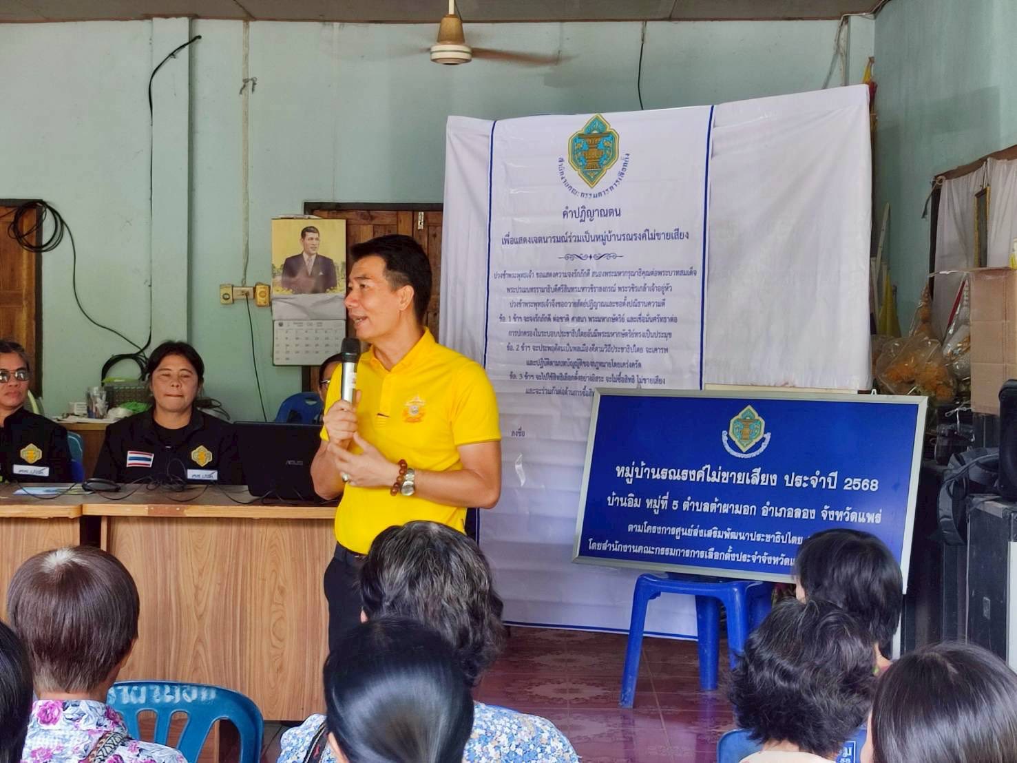 วันที่ 25 สิงหาคม 2568 นางอัจจิมา วรรณเลิศ ครู รักษาการในตำแหน่ง ผู้อำนวยการ ศูนย์ส่งเสริมการเรียนรู้ระดับอำเภอลอง มอบหมาย นางสาวอัจฉราภรณ์ ขันทะสอน และนายภาสกร ถาเงิน ครูศูนย์การเรียนรู้ พร้อมด้วยคณะกรรมการ ศส.ปชต.ต้าผามอก จัดกิจกรรมหมู่บ้านรณรงค์ไม่ขายเสียง ประจำปี 2568 ตามโครงการศูนย์ส่งเสริมพัฒนาประชาธิปไตย (ศส.ปชต.) มีกิจกรรมให้ความรู้รณรงค์ไม่ซื้อสิทธิ์ขายเสียงแก่สมาชิกหมู่บ้าน กิจกรรมลงสัตยาบรรณเป็นหมู่บ้านรณรงค์ไม่ขายเสียง และรับมอบป้ายรณรงค์ไม่ขายเสียง โดยมีนายชนวิท พิมพิลา ผู้อำนวยการสำนักงานคณะกรรมการการเลือกตั้งประจำจังหวัดแพร่ มอบป้ายรณรงค์ไม่ขายเสียงให้กับนายบุญญวัฒน์ สมบูรณ์ ผู้ใหญ่บ้านบ้านอิม หมู่ที่ 5 ตำบลต้าผามอก ร่วมเป็นเกียรติในการจัดกิจกรรม สถานที่จัด ศาลาอเนกประสงค์หมู่บ้านบ้านอิม หมู่ที่ 5 ตำบลต้าผามอก อำเภอลอง จังหวัดแพร่