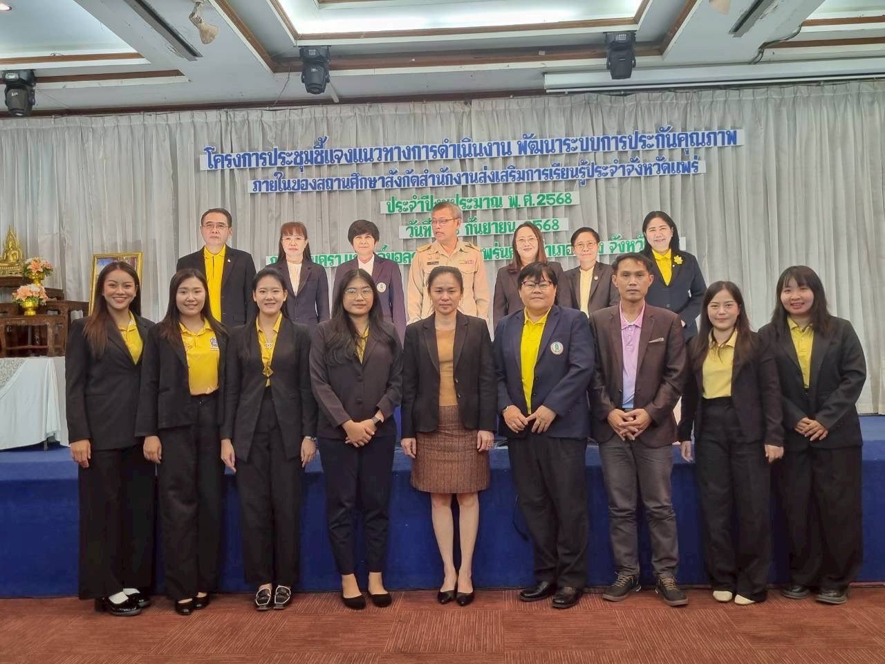 นำโดยนางอัจจิมา วรรณเลิศ ครู รักษาการในตำแหน่ง ผอ.สกร.ระดับอำเภอลอง และคณะครูศูนย์การเรียนรู้ระดับอำเภอลอง เข้าร่วมโครงการประชุมชี้แจงแนวทางการดำเนินงานพัฒนาระบบการประกันคุณภาพภายในของสถานศึกษา สังกัดสำนักงานส่งเสริมการเรียนรู้ประจำจังหวัดแพร่ ประจำปีงบประมาณ พ.ศ. 2568 โดยมีนายอนันต์ คงชุม ผู้อำนวยการสำนักงานส่งเสริมการเรียนรู้ประจำจังหวัดแพร่ เป็นประธานในพิธีเปิด ณ ห้องนครา แกรนด์บอลรูม โรงแรมแพร่ นครา อำเภอเมือง จังหวัดแพร่