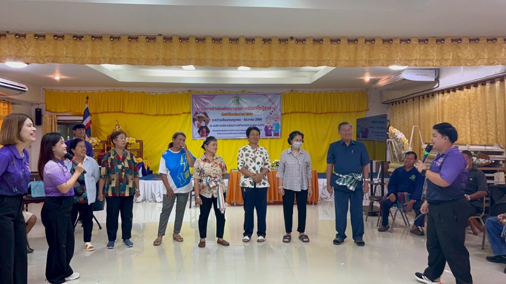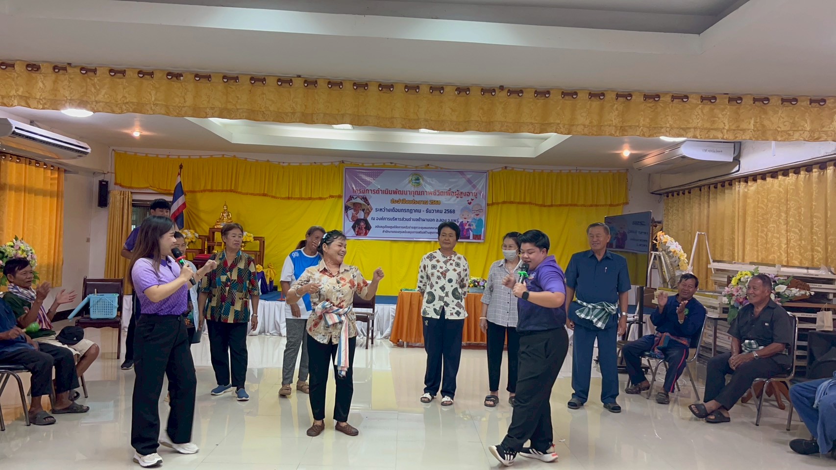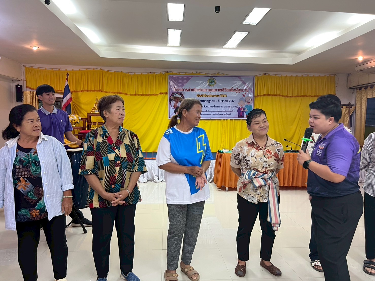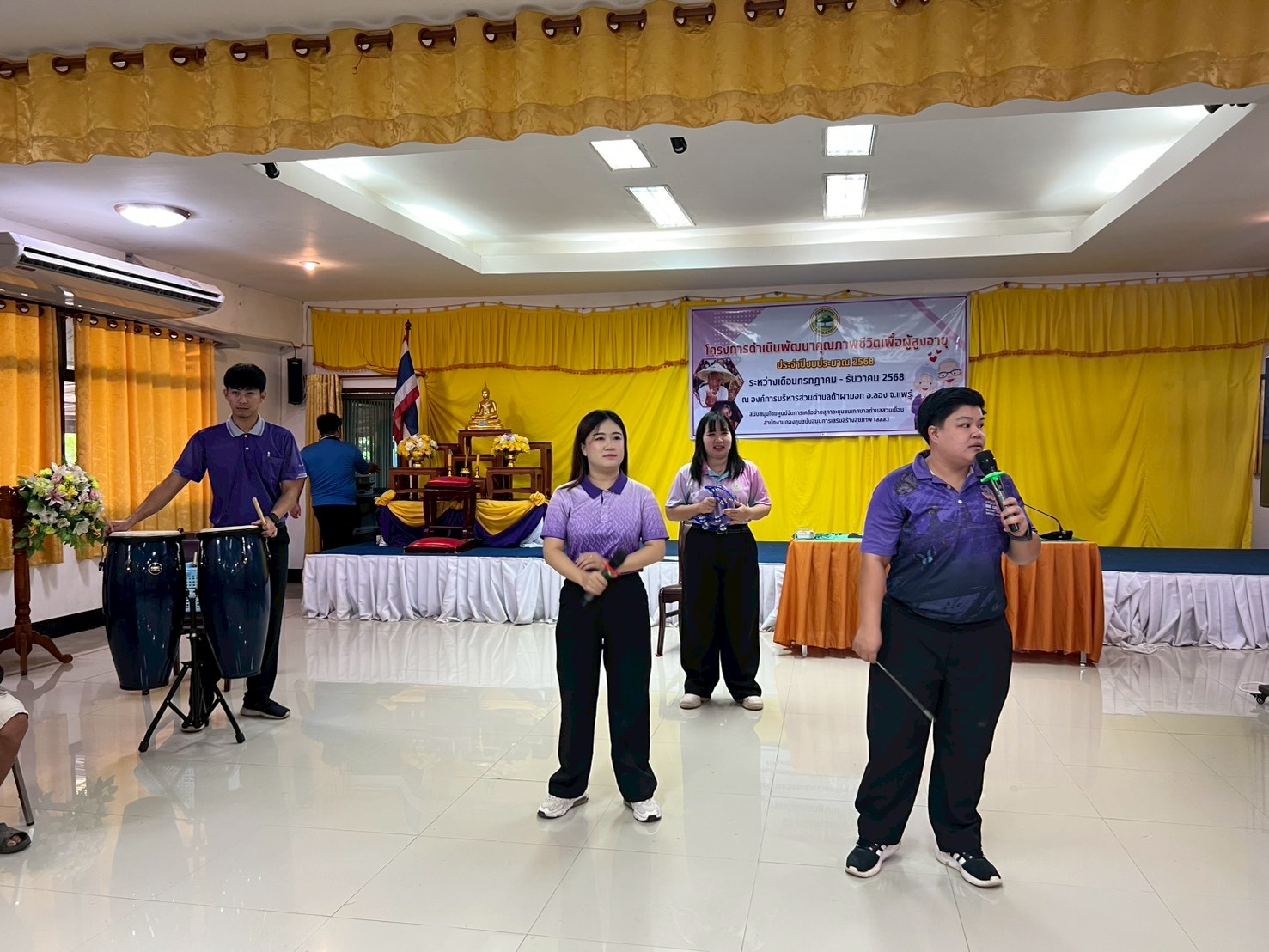 นางอัจจิมา วรรณเลิศ ครู รักษาการในตำแหน่งผู้อำนวยการศูนย์ส่งเสริมการเรียนรู้ระดับอำเภอลอง มองหมายให้นายศุภวิชญ์ สวนจักร ครูศูนย์การเรียนรู้ นางสาวอัจฉราภรณ์ ขันทะสอน ครูศูนย์การเรียนรู้ โซนน้ำต้าป่าสัก ว่าที่ร้อยตรีหญิงสุกัลยา ค้าไม้ ครูศูนย์การเรียนรู้ นางสาวณัฐริกา รินทะวงศ์ ครูศูนย์การเรียนรู้ และนางสาวธนัญชนก จักรแหลม บรรณารักษ์ เป็นวิทยากรสกร.ระดับอำเภอลอง โครงการดำเนินพัฒนาคุณภาพชีวิตผู้สูงอายุ ประจำปีงบประมาณ 2568 เพื่อเป็นการส่งเสริมการเรียนรู้ตลอดชีวิตการพัฒนาเพื่อคุณภาพชีวิตผู้สูงอายุ กิจกรรมสันทนาการและสุนทรียภาพผู้สูงอายุ ณ องค์การบริหารส่วนตำบลต้าผามอก จ.ลอง จ.แพร่