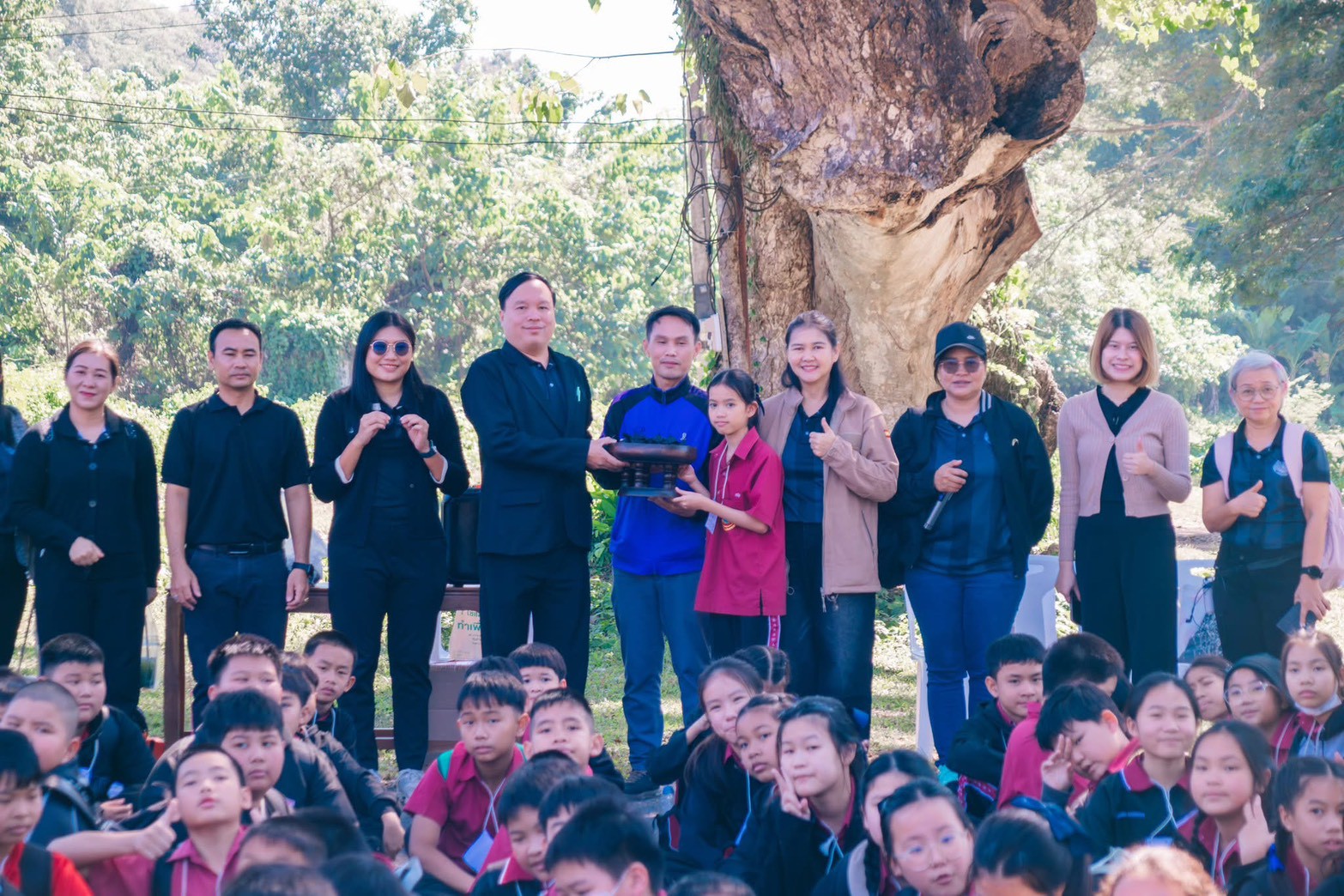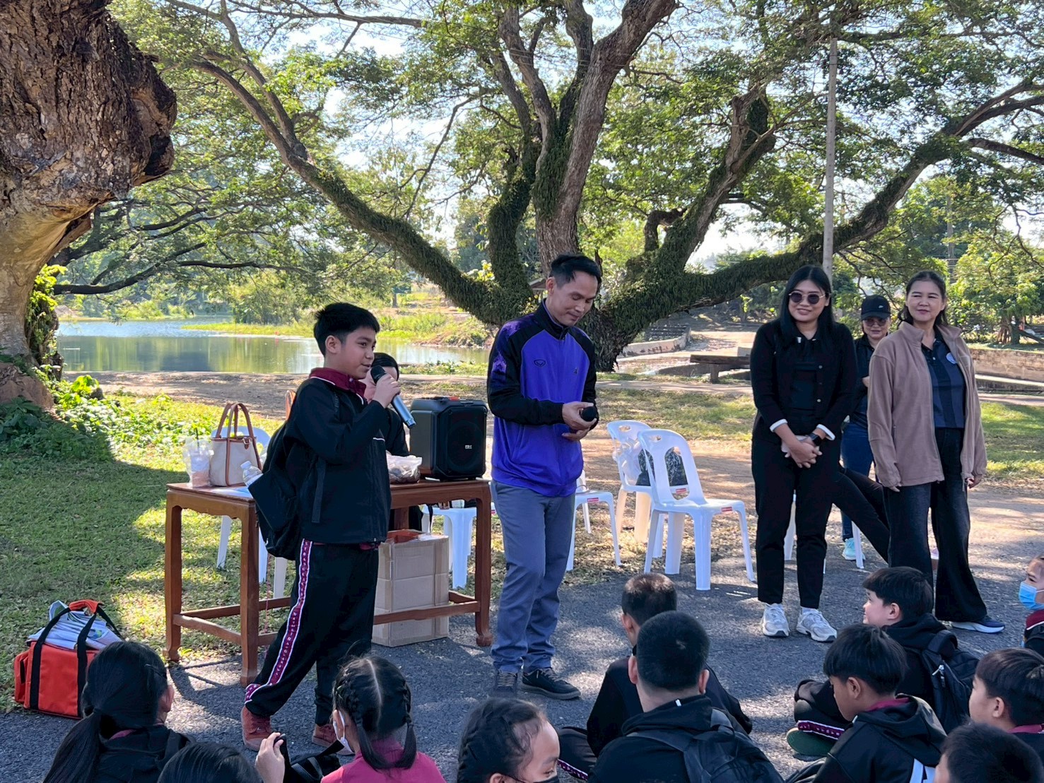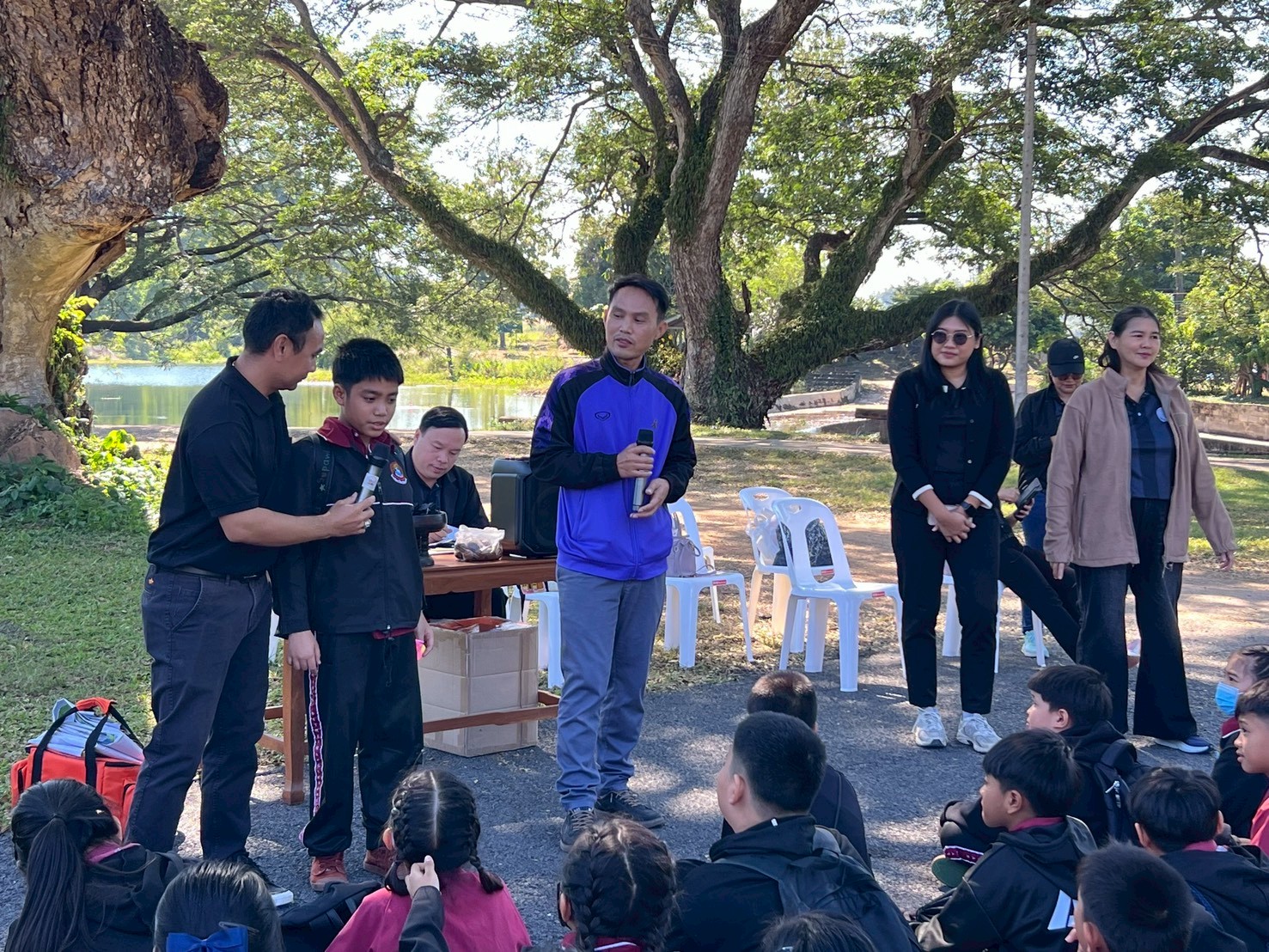 นางสาวชาลิตศา เฒ่าเขียว ครู รักษาการในตำแหน่ง ผอ.สกร.ระดับอำเภอลอง มอบหมายให้นางสาวอนันตญา อินทราวุธ บรรณารักษ์ปฏิบัติการ นายภาสกร ถาเงิน ครู ศกร. นายรัชตะ จิตรบุณย์ บรรณารักษ์ นางสาวธนัญชนก จักรแหลม บรรณารักษ์ ห้องสมุดประชาชน “เฉลิมราชกุมารี” อำเภอลอง จ.แพร่ นักเรียน 184 คน คณะครู 16 คน รวมทั้งสิ้น 200 คนโดยมีกิจกรรมแจก “โบว์ดำ” เพื่อร่วมแสดงความอาลัย และน้อมรำลึกในพระมหากรุณาธิคุณอย่างหาที่สุดมิได้ และสรุปองค์ความรู้ประวัติความเป็นมาของสถานีรถไฟ และให้ความรู้ประวัติความเป็นมาของ “เมืองแพร่แห่ระเบิด เหตุเกิดที่เมืองลอง” แลกเปลี่ยนเรียนรู้ซักถามข้อสงสัยให้แก่นักเรียน ณ บ้านหนังสือชุมชนสถานีรถไฟบ้านปิน อำเภอลอง จังหวัดแพร่