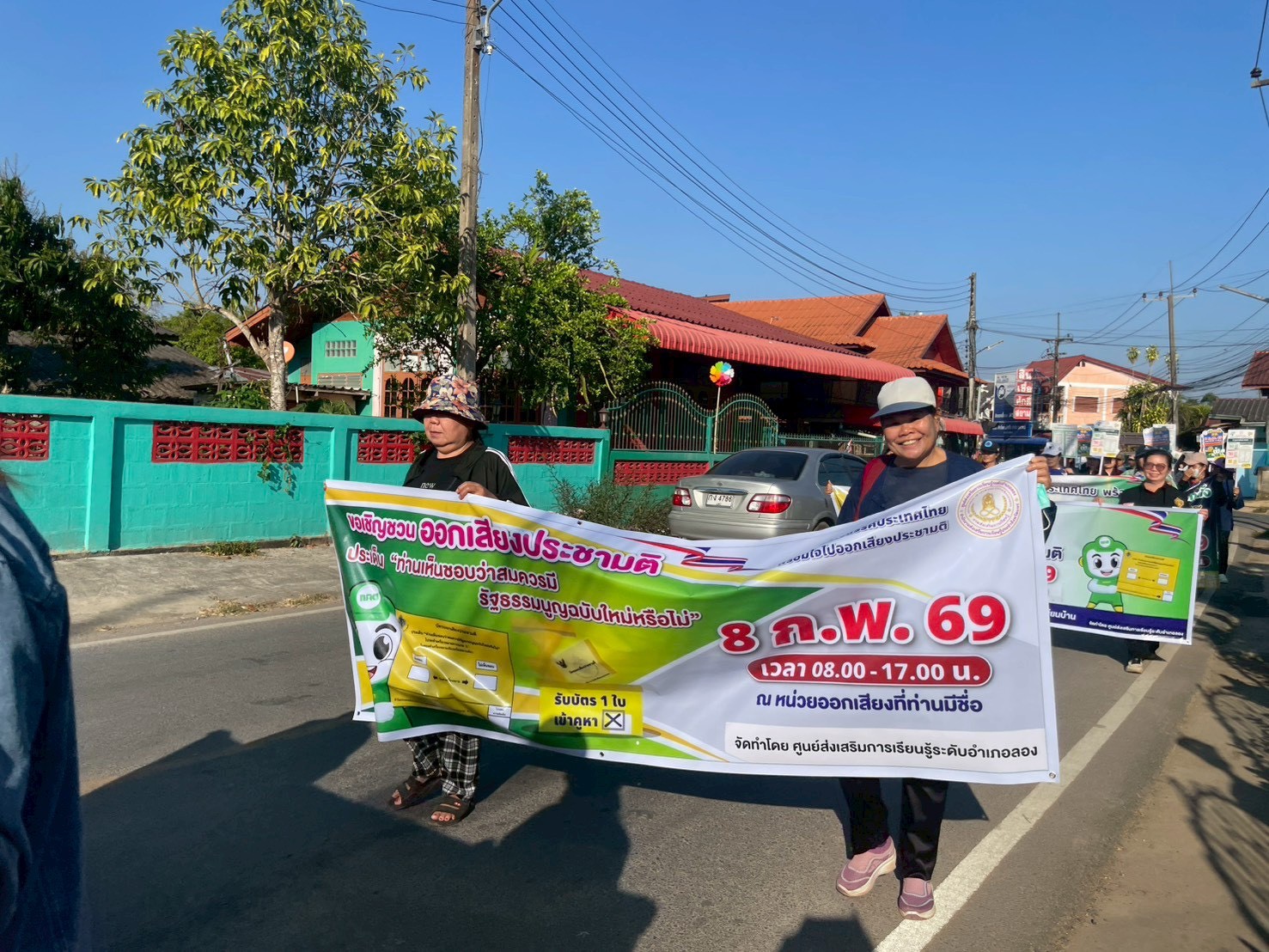 นำโดยนางสาวชาลิตศา เฒ่าเขียว ครู รักษาการในตำแหน่ง ผอ.สกร.ระดับอำเภอลอง นางสาววิยดา เกตุเอี่ยม ครูศูนย์การเรียนรู้ตำบลปากกาง ดำเนินงานกิจกรรมขับเคลื่อนโครงการรณรงค์สัปดาห์ประชาธิปไตยในสถานศึกษา โดยมีการเดินรณรงค์ประชาสัมพันธ์เชิญชวนประชาชนไปลงคะแนนเสียงการเลือกตั้งสมาชิกสภาผู้แทนราษฎร และการออกเสียงประชามติ เดินรณรงค์ตามเส้นทางถนนผ่านชุมชน ตำบลปากกาง อำเภอลอง จังหวัดแพร่