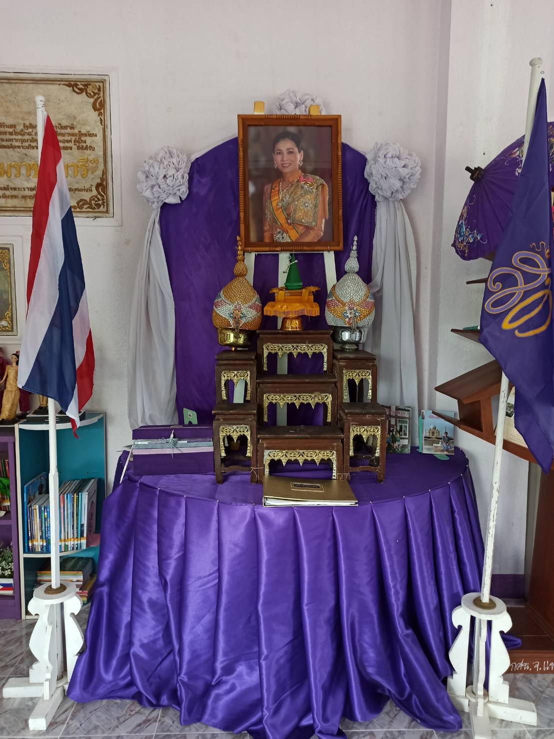 กศน.อำเภอลอง วันที่ 3 มิถุนายน 2563 คณะครู กศน.ตำบล บุคลากร และบรรณารักษ์ ประดับผ้าขาวม่วง และอัญเชิญพระบรมฉายาลักษณ์ ขึ้นประดิษฐาน ณ โต๊ะหมู่บูชา และร่วมกิจกรรมจิตอาสาพัฒนา กศน.อำเภอลอง ,กิจกรรม 5 ,ปลูกต้นไม้และร่วมพัฒนาห้องสมุดประชาชนเฉลิมราชกุมารี อำเภอลอง จังหวัดแพร่