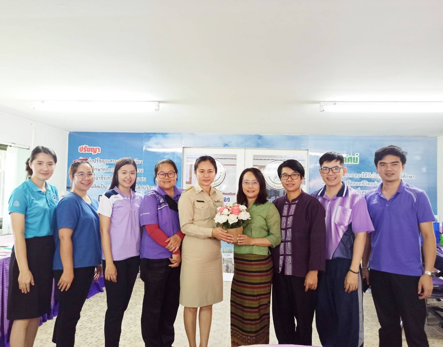 กศน.อำเภอลอง วันที่ 23 กันยายน 2562 นางสาวรติรัตน์ อินต์ธะวิชัย ผอ.กศน.อำเภอลอง และบุคลากร ร่วมให้การต้อนรับ นางอัจจิมา วรรณเลิศ ครูผู้ช่วย มาปฏิบัติหน้าที่ ณ กศน.อำเภอลอง
