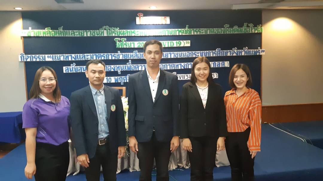 วันที่ 10 พฤศจิกายน 2563 นางสาวรติรัตน์ อินต์ธะวิชัย ผู้อำนวยการ กศน.อำเภอลอง มอบหมายให้ คณะครู กศน.ตำบล เข้าร่วมรับฟังชี้แจงแนวทางการดำเนิน โครงการช่วยเหลือเด็กและเยาวชนที่ได้รับผลกระทบจากสถานการณ์การระบาด ฯ โควิด -19 ” กิจกรรมแนวทางและมาตราการช่วยเหลือเด็กและเยาวชนนอกระบบการศึกษาจังหวัดแพร่ ” สนับสนุนโดย กองทุนเพื่อความเสมอภาคทางการศึกษา (กสศ.) ณ โรงแรมแพร่นครา อำเภอเมือง จังหวัดแพร่