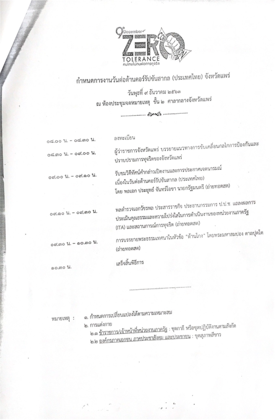 ประชาสัมพันธ์การจัดงานวันต่อต้านคอร์รัปชันสากล (ประเทศไทย) จังหวัดแพร่