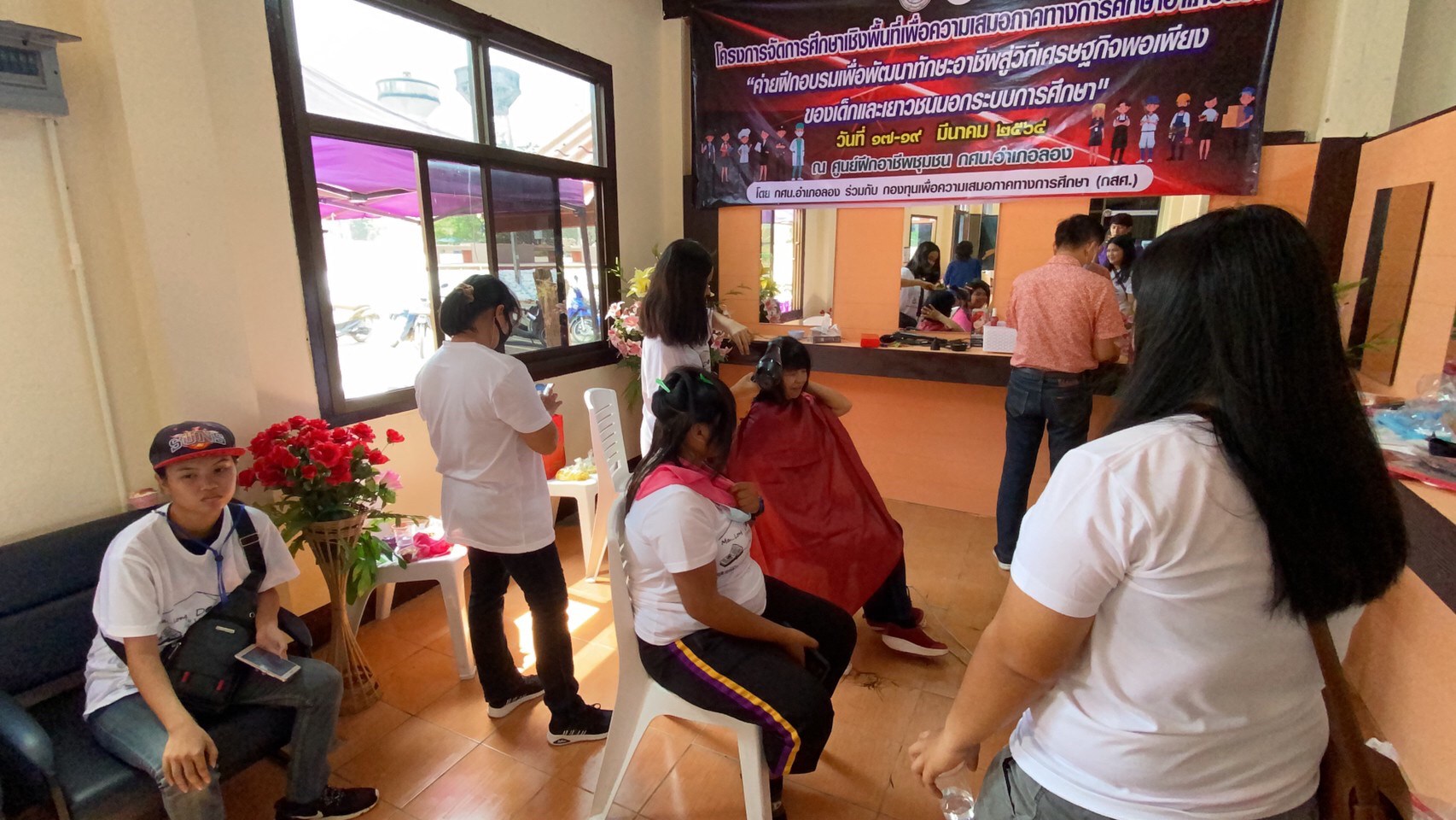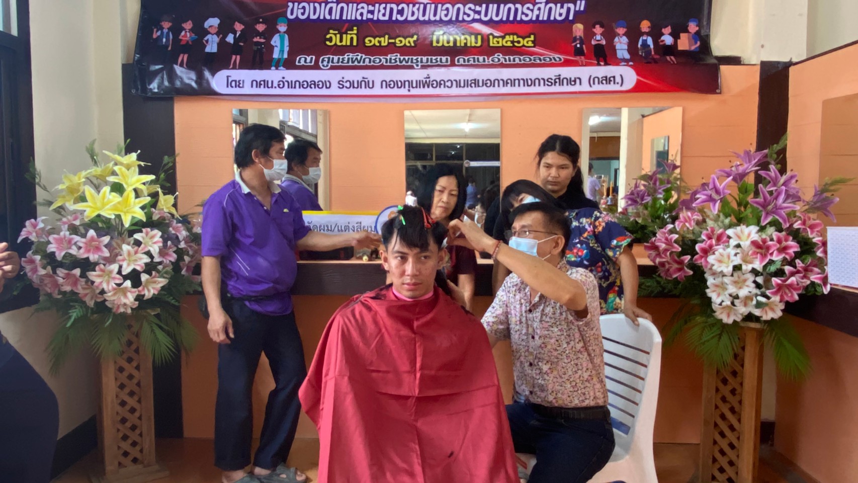 วันที่ 17 มีนาคม 2564 / กศน.อำเภอลอง ร่วมกับ กองทุนเพื่อความเสมอภาคทางการศึกษา (กสศ.) ดำเนินค่ายอบรมการเรียนรู้สู่วิถีพอเพียง สำหรับกลุ่มเป้าหมายเด็กและเยาวชนนอกระบบการศึกษา ตามโครงการจัดการศึกษาเชิงพื้นที่เพื่อความเสมอภาคทางการศึกษาอำเภอลอง ตั้งแต่วันที่ 17-19 มีนาคม 2564 โดยฐานที่ 2 อาชีพช่างตัดผม แต่งสีผม ได้รับเกียรติจาก นายธีระพร ไชยชนะ มาเป็นวิทยากรในการฝึกอาชีพในครั้งนี้