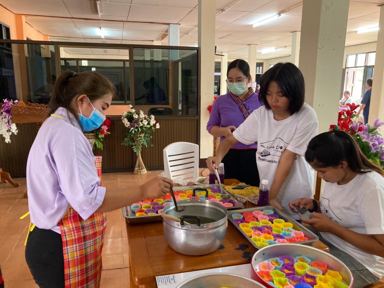 วันที่ 17 มีนาคม 2564 / กศน.อำเภอลอง ร่วมกับ กองทุนเพื่อความเสมอภาคทางการศึกษา (กสศ.) ดำเนินค่ายอบรมการเรียนรู้สู่วิถีพอเพียง สำหรับกลุ่มเป้าหมายเด็กและเยาวชนนอกระบบการศึกษา ตามโครงการจัดการศึกษาเชิงพื้นที่เพื่อความเสมอภาคทางการศึกษาอำเภอลอง ตั้งแต่วันที่ 17-19 มีนาคม 2564 โดยฐานที่ 3 การทำขนมไทย ได้รับเกียรติจาก นางสาวจารุวรรณ อักษรเจริญ มาเป็นวิทยากรในการฝึกอาชีพในครั้งนี้