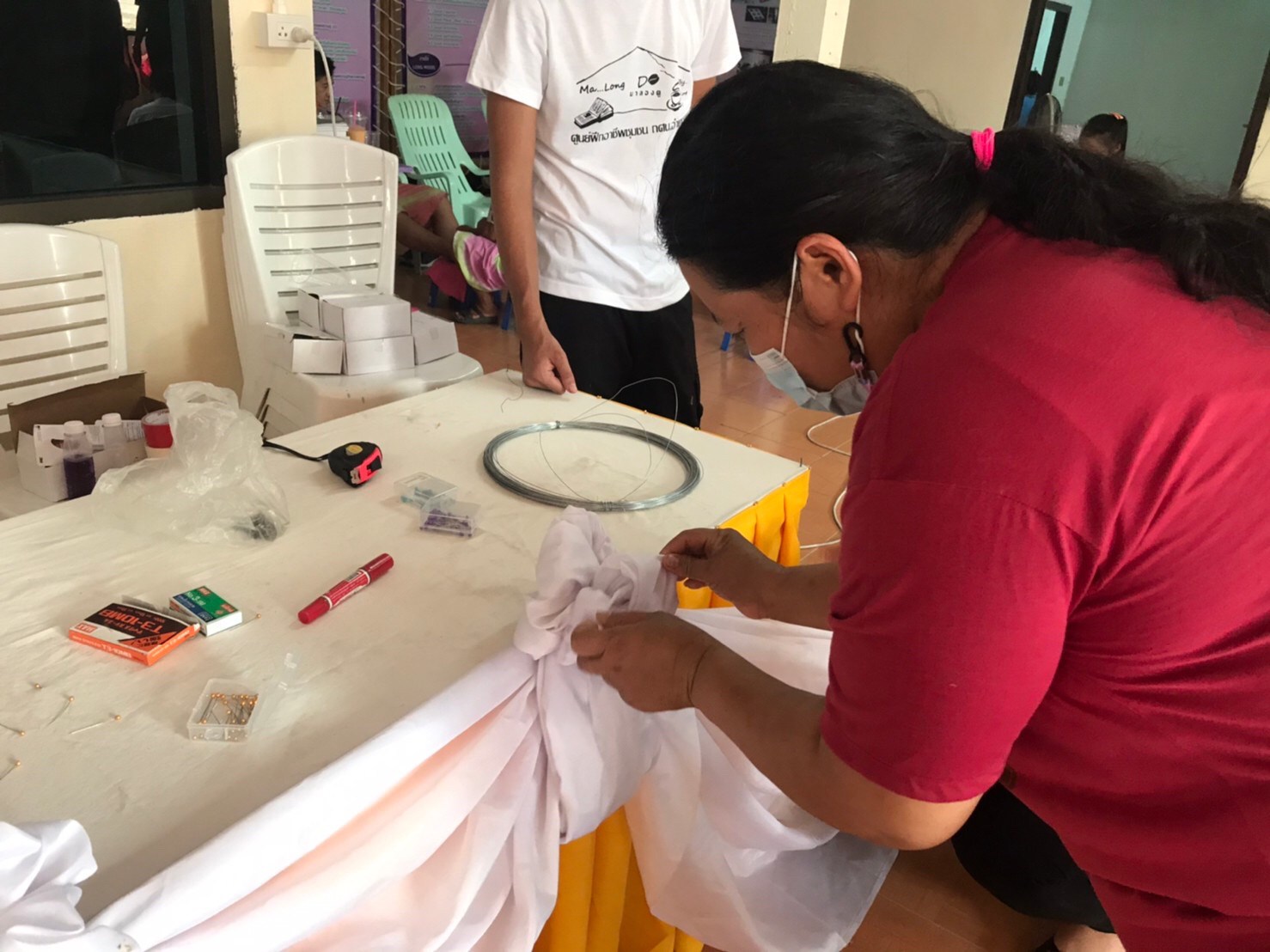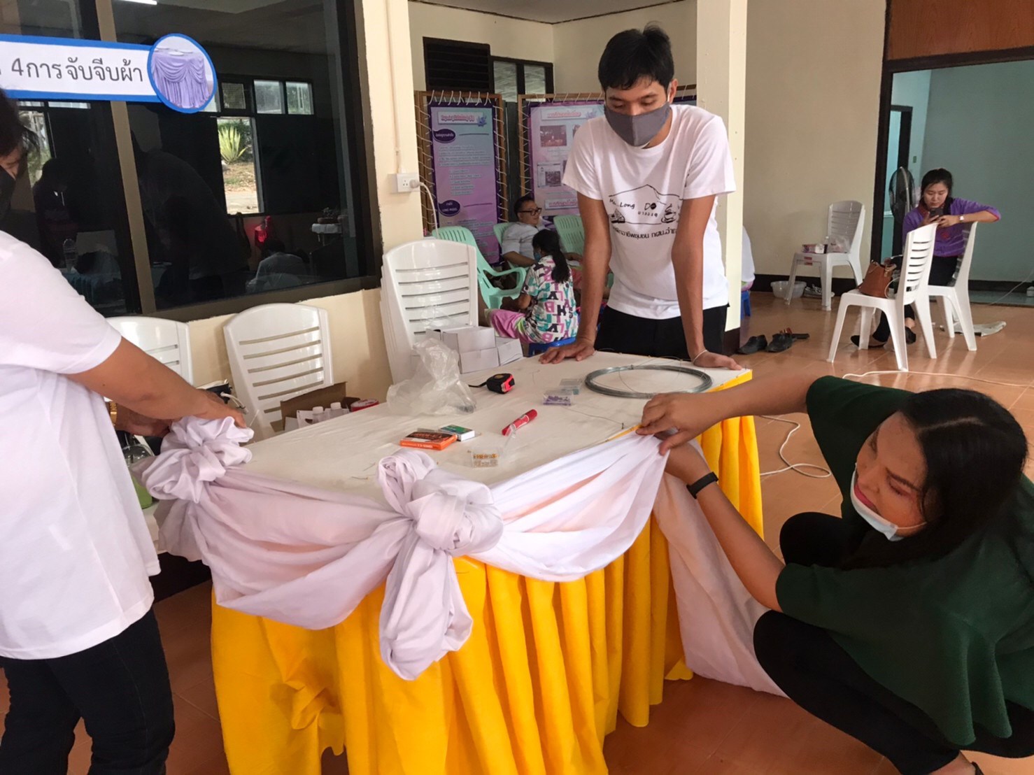 วันที่ 17 มีนาคม 2564 / กศน.อำเภอลอง ร่วมกับ กองทุนเพื่อความเสมอภาคทางการศึกษา (กสศ.) ดำเนินค่ายอบรมการเรียนรู้สู่วิถีพอเพียง สำหรับกลุ่มเป้าหมายเด็กและเยาวชนนอกระบบการศึกษา ตามโครงการจัดการศึกษาเชิงพื้นที่เพื่อความเสมอภาคทางการศึกษาอำเภอลอง ตั้งแต่วันที่ 17-19 มีนาคม 2564 โดยฐานที่ 4 การจับจีบผ้า ได้รับเกียรติจาก นายวัชรภานุ อินต๊ะหา มาเป็นวิทยากรในการฝึกอาชีพในครั้งนี้