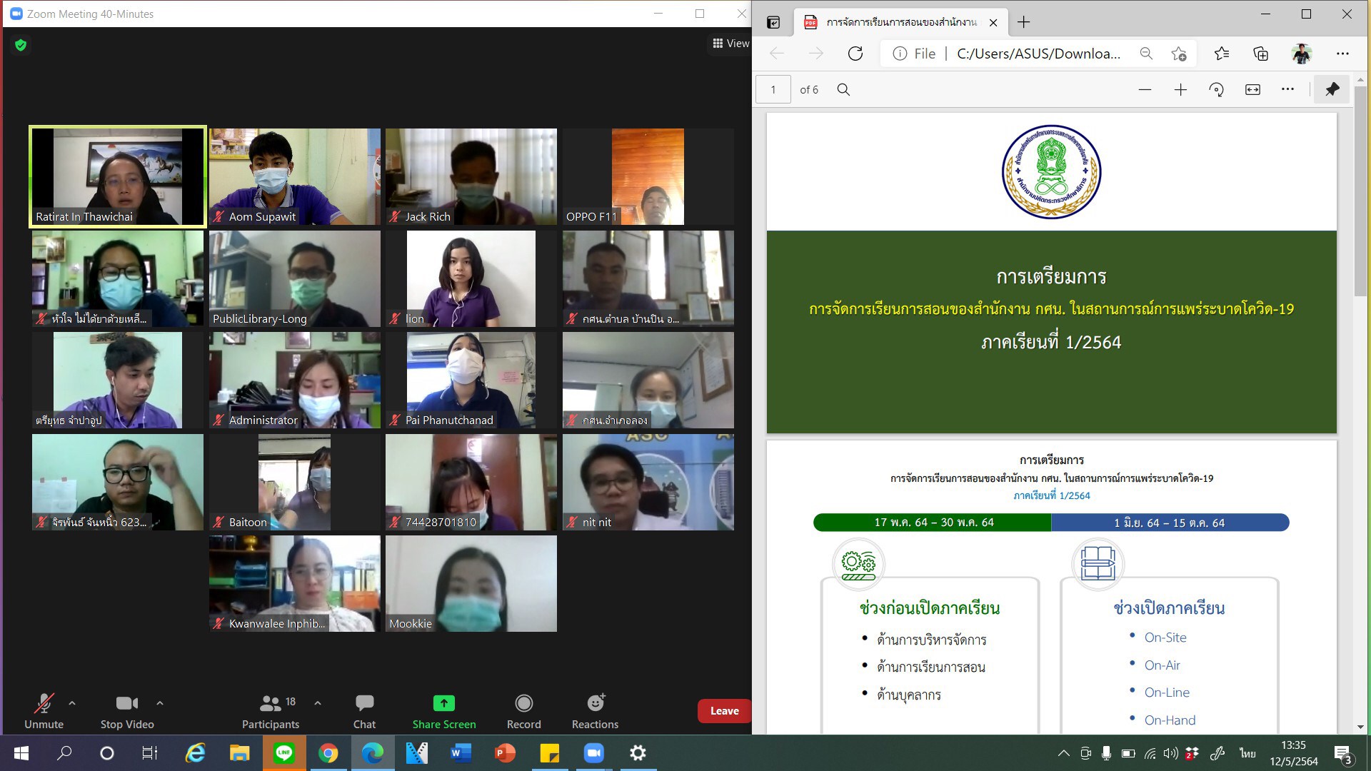 วันที่ 12 พฤษภาคม 2564 นำโดยนางสาวรติรัตน์ อินต์ธะวิชัย ผอ.กศน.อำเภอลอง พร้อมด้วยคณะครู และบุคลากร กศน.อำเภอลอง ดำเนินการประชุมวางแผนการปฏิบัติงาน เตรียมการเรียนการสอน ภาคเรียนที่ 1/2564 ผ่านระบบออนไลน์ zoom meeting เพื่อให้เป็นไปตามมาตรการป้องกันโควิด ณ กศน.อำเภอลอง