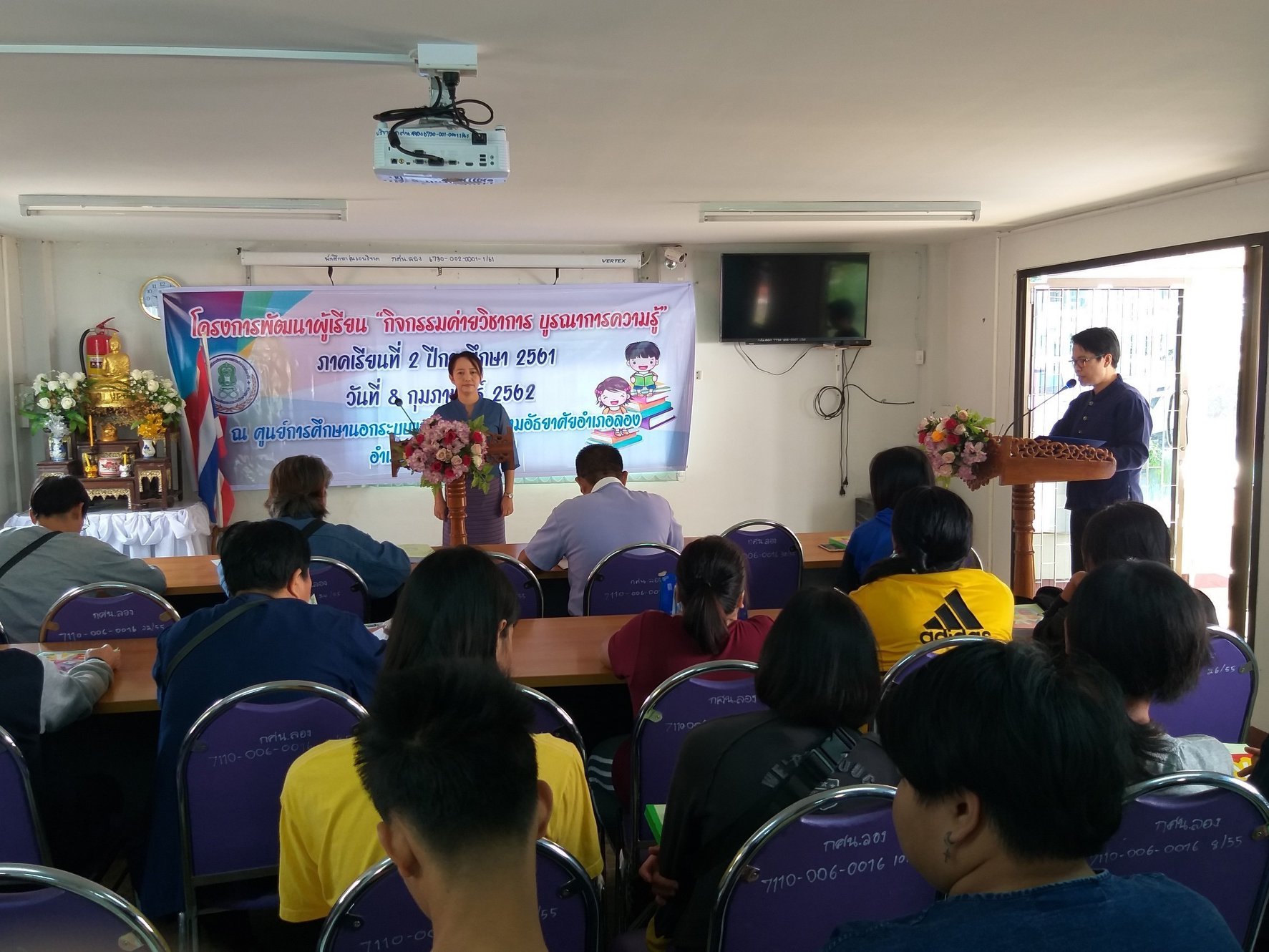วันที่ 8 กุมภาพันธ์ 2562 นางสาวรติรัตน์ อินต์ธะวิชัย ผู้อำนวยการ กศน.อำเภอลอง มอบหมายให้ คณะครู กศน.ตำบล จัดโครงการพัฒนาผู้เรียน “ค่ายวิชาการ บูรณาการเรียนรู้” ภาคเรียนที่ 2 ปีการศึกษา 2561 กิจกรรมมี 4 ฐานการเรียนรู้ ได้แก่