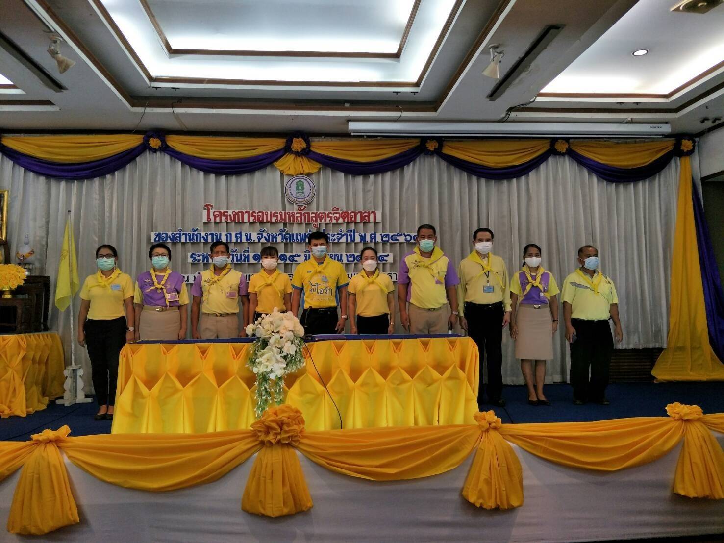 ระหว่างวันที่ 14-15 มิถุนายน 2564 ณ โรงแรมแพร่นครา อำเภอเมืองแพร่ จังหวัดแพร่ และ ห้องประชุมสำนักงาน กศน. จังหวัดแพร่ โดย แบ่งเป็น 2 รุ่น การอบรมในครั้งนี้มีวัตถุประสงค์เพื่อให้ข้าราชการ บุคลากรและเจ้าหน้าที่ได้มีความรู้ ความเข้าใจ มีจิตสาธารณะและพร้อมอาสาสมัครในการบำเพ็ญประโยชน์ต่อส่วนรวม โดยการอบรมเป็นไปตามมาตรการป้องกันการแพร่ระบาดของเชื้อไวรัสโคโรนา 2019 โดยผู้เข้ารับการอบรมในหัวข้อ การปฐมพยาบาลเบื้องต้น และการช่วยชีวิตขั้นพื้นฐาน (CPR) ใช้ห้องประชุมสำนักงาน กศน. จังหวัดแพร่ เป็นสถานที่ดำเนินการ เพื่อเป็นการหลีกเลี่ยงการรวมคนเป็นจำนวนมาก