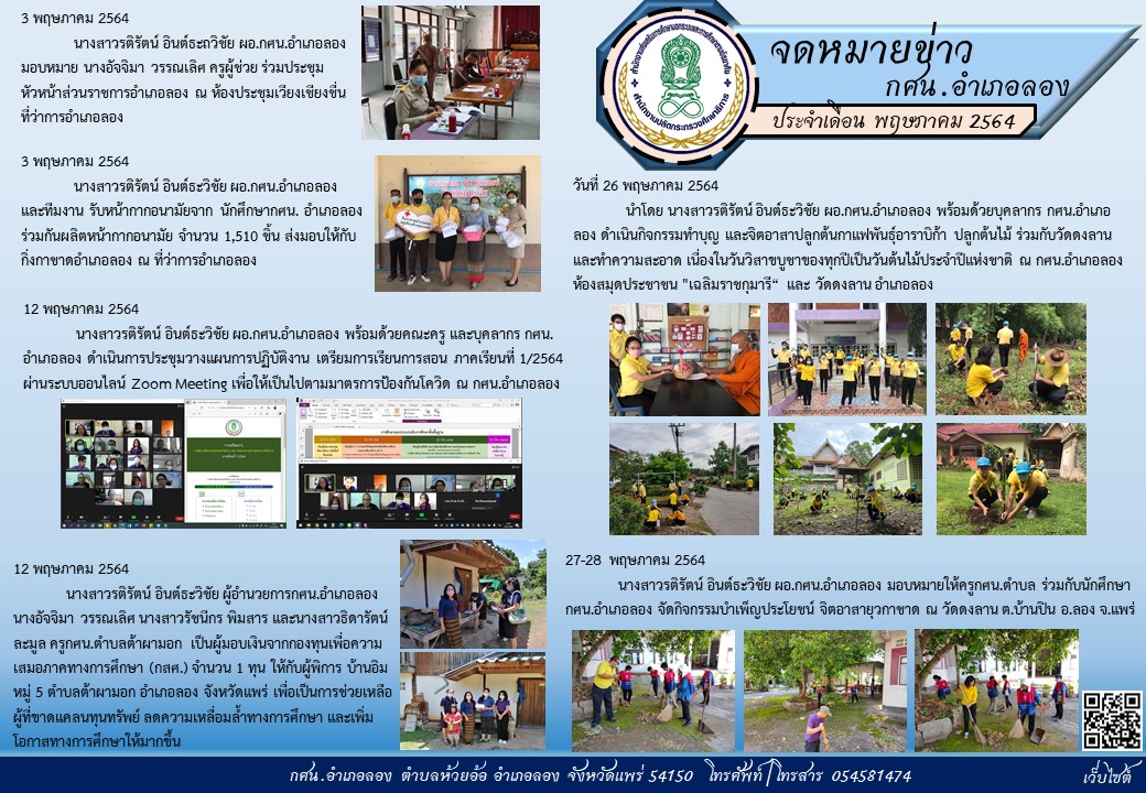 สรุปผลการดำเนินงาน กศน.อำเภอลอง ประจำเดือน พฤษภาคม 2564