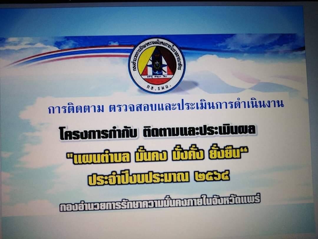 เมื่อวันที่ 2 กรกฎาคม 2564 โดยท่านผอ.รติรัตน์ อินต์ธะวิชัยมอบหมายให้น.ส.รัชนีกร พิมสาร ตำแหน่งครู เข้าร่วมการประชุม การติดตามตรวจสอบและประเมินการดำเนินงาน โครงการกำกับติดตามและประเมินผล “แผนตำบล มั่นคง มั่งคั่ง ยั่งยืน “ประจำปีงบประมาณ 2564 กองอำนวยการรักษาความมั่นคงจังหวัดแพร่ ณ ห้องประชุมองค์การบริหารส่วนตำบลทุ่งแล้ง องค์การบริหารส่วนตำบลทุ่งแล้ง จังหวัดแพร่