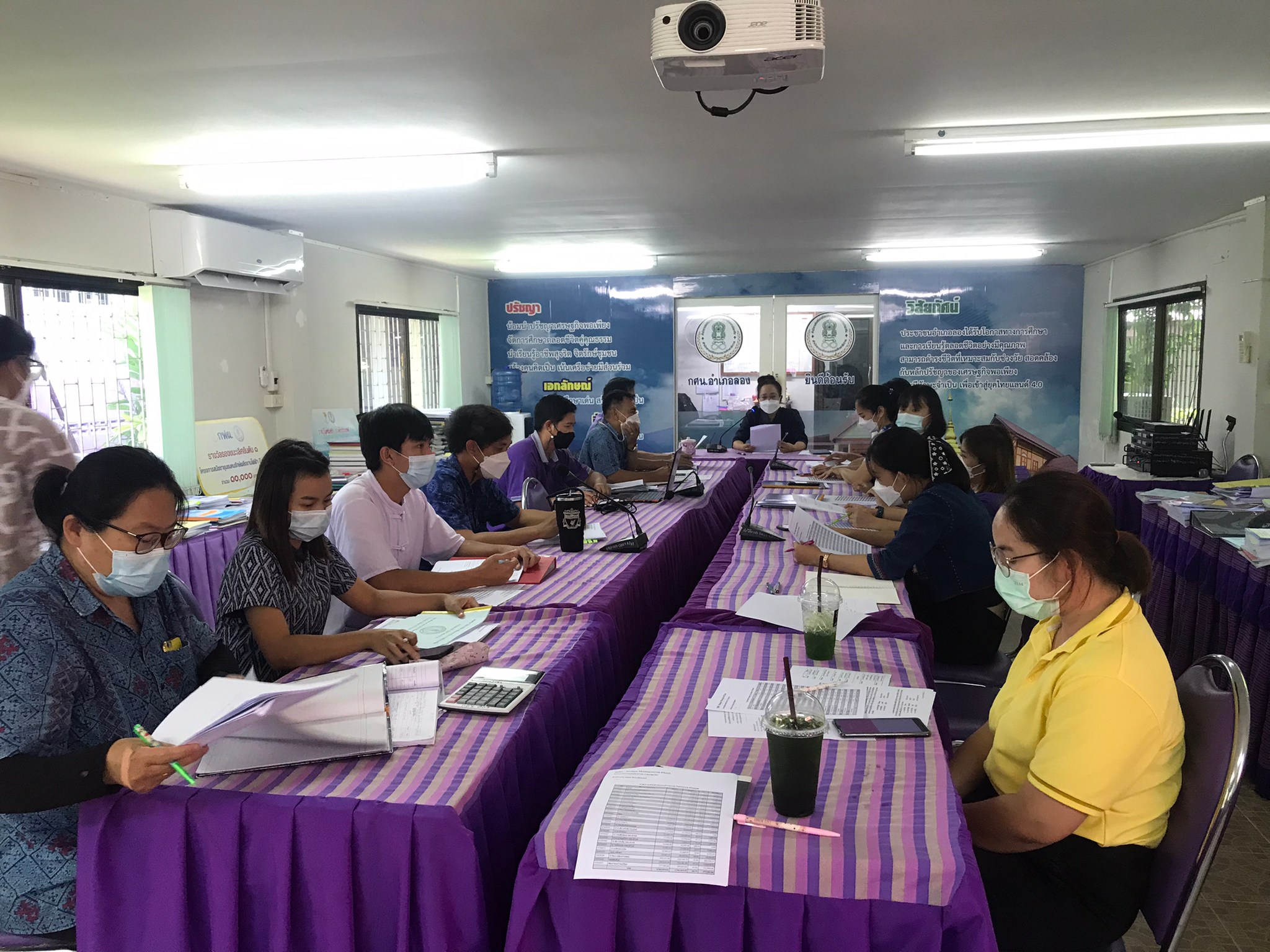 วันที่ 13 สิงหาคม 2564 นางสาวรติรัตน์ อินต์ธะวิชัย ผอ.กศน.อำเภอลอง พร้อมด้วยคณะครู และบุคลากร กศน.อำเภอลอง ดำเนินการประชุมติดตาม และวางแผนการดำเนินงาน ณ ห้องประชุม กศน.อำเภอลอง โดยมีหัวข้อการประชุม 4 เรื่อง ดังนี้