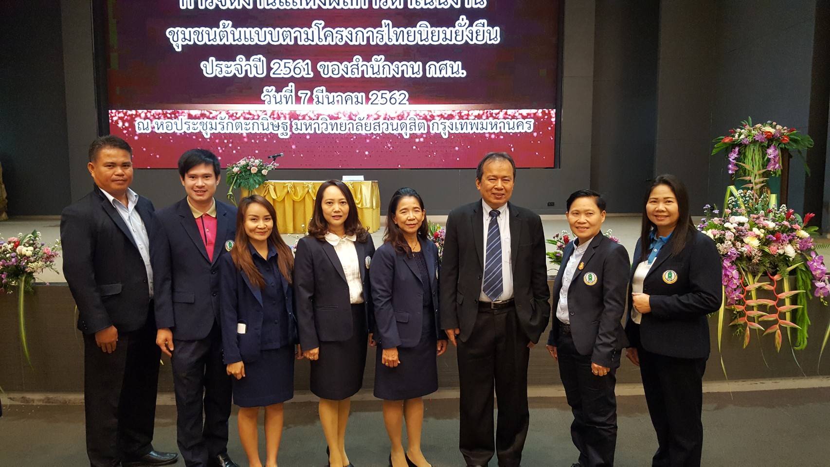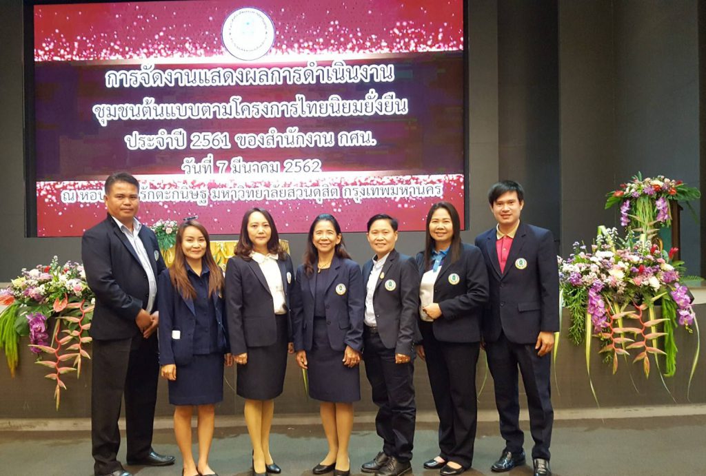 นางสาวรติรัตน์ อินต์ธะวิชัย ผอ.กศน.อำเภอลอง และนายยุทธนา ปัญญาใจ ครู กศน.ตำบล ร่วมจัดงานแสดงผลการดำเนินงานชุมชนต้นแบบตามโครงการไทยนิยมยั่งยืน ประจำปี 2561 ของสำนักงาน กศน.
