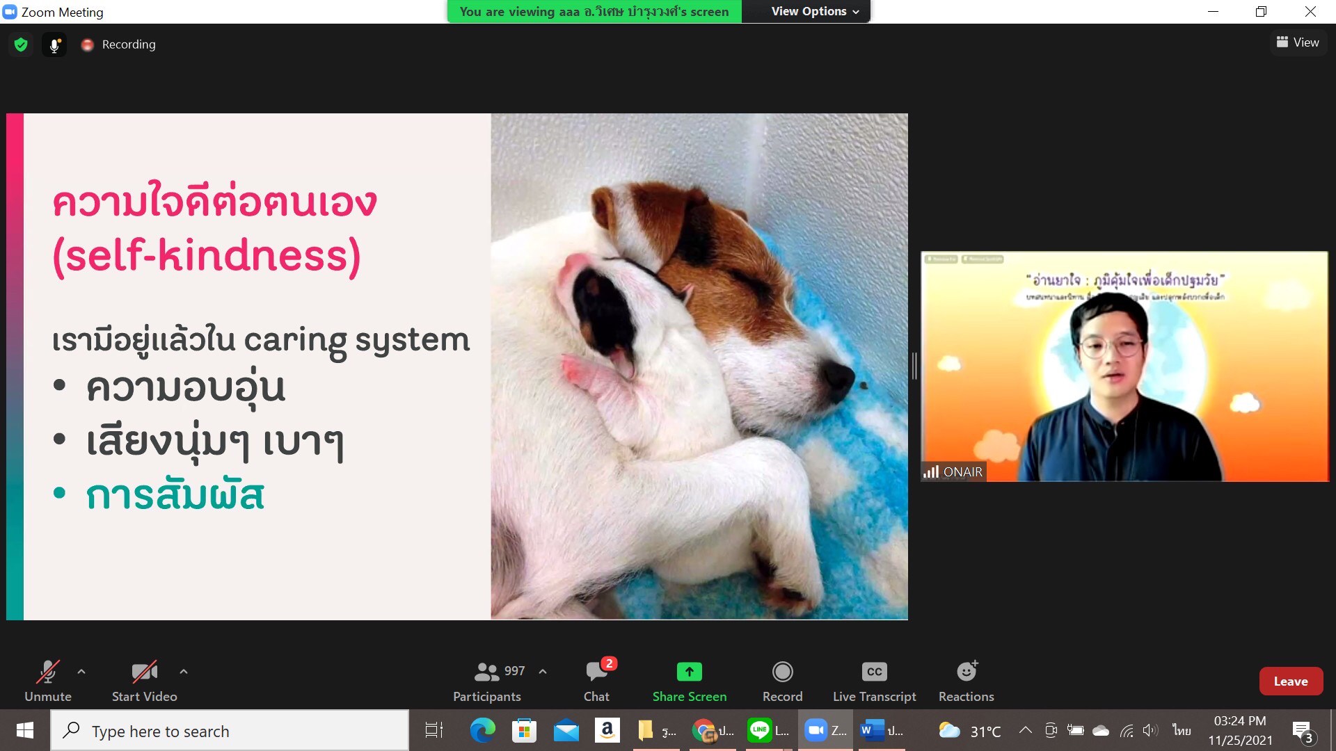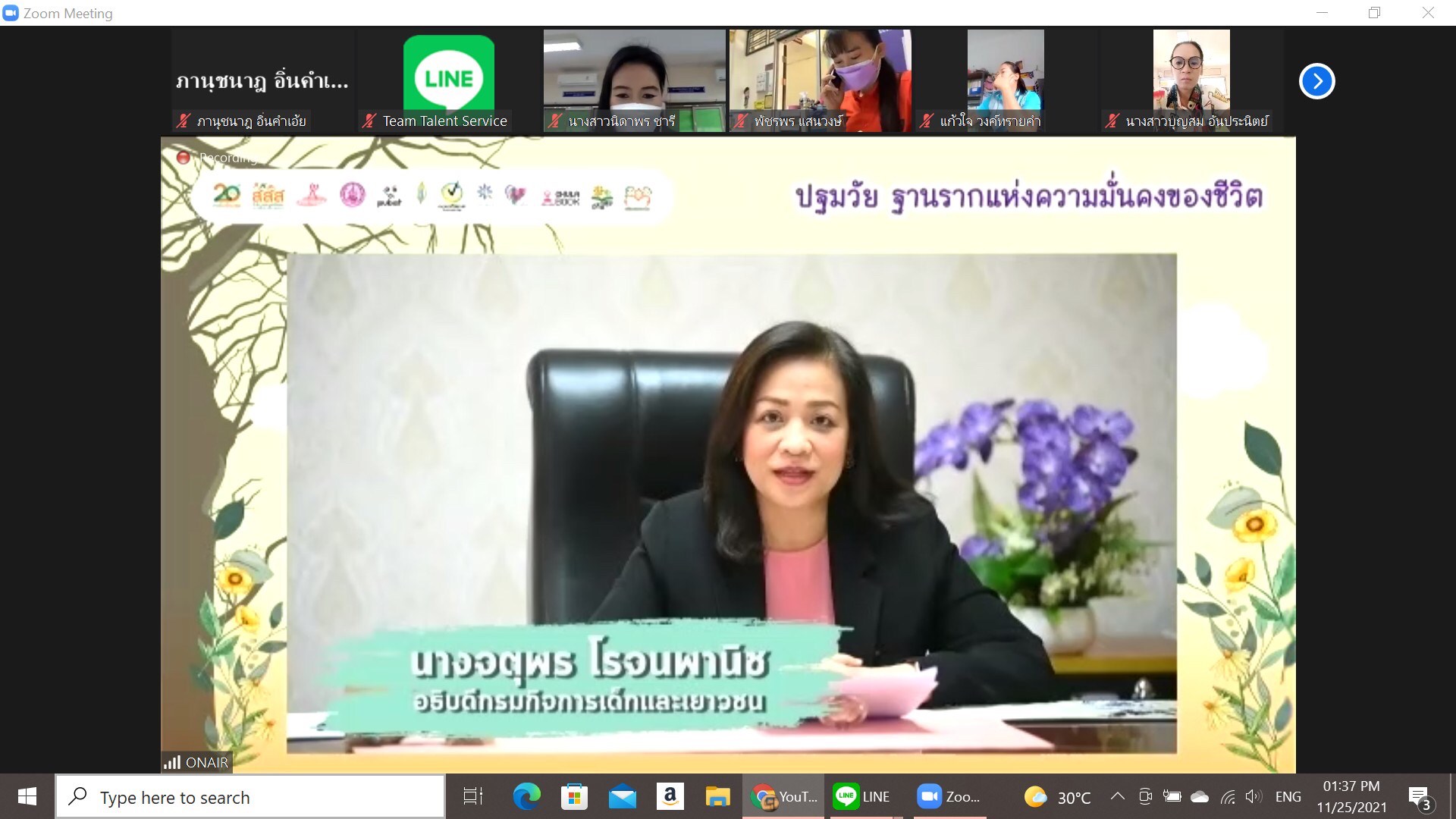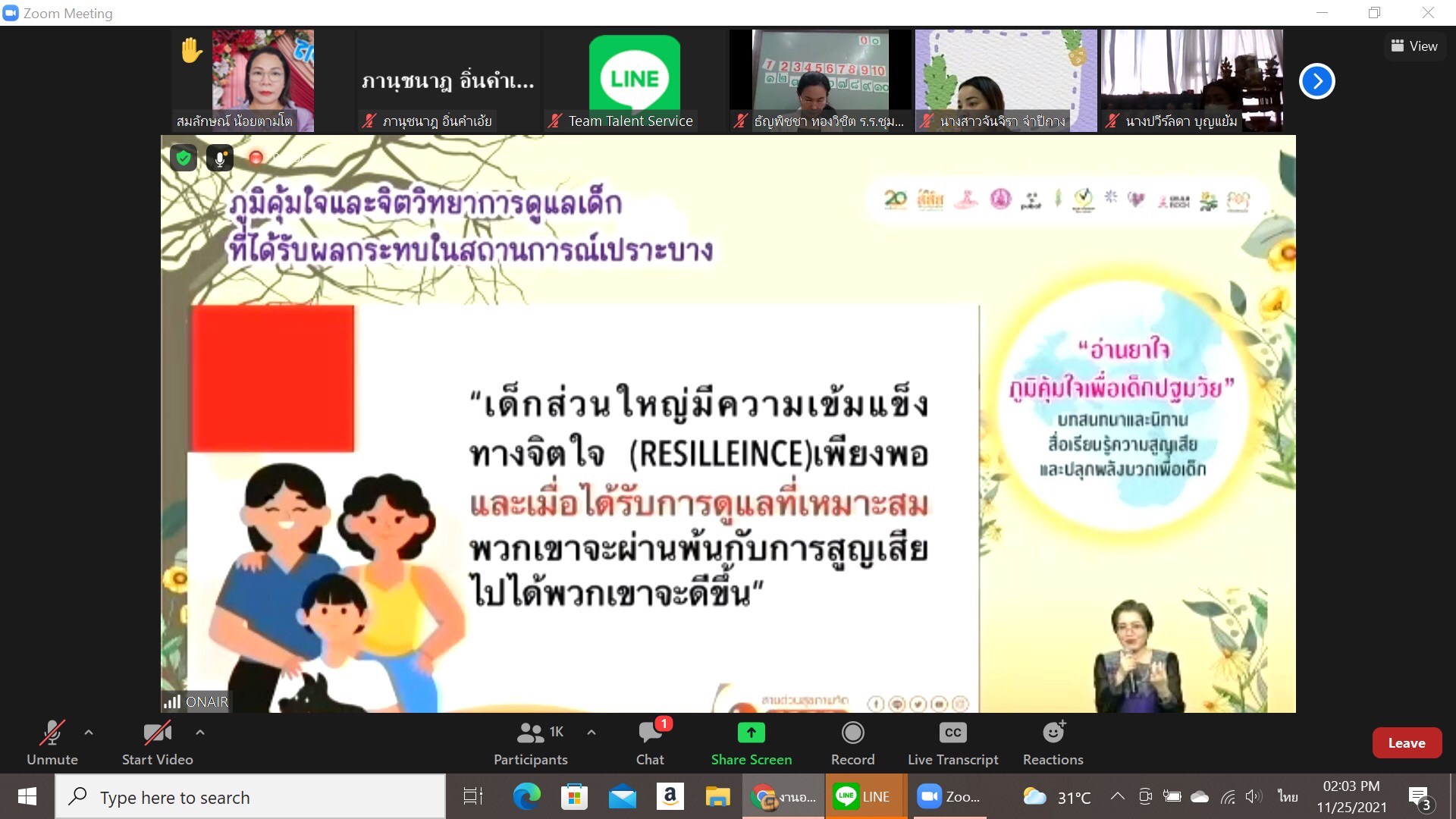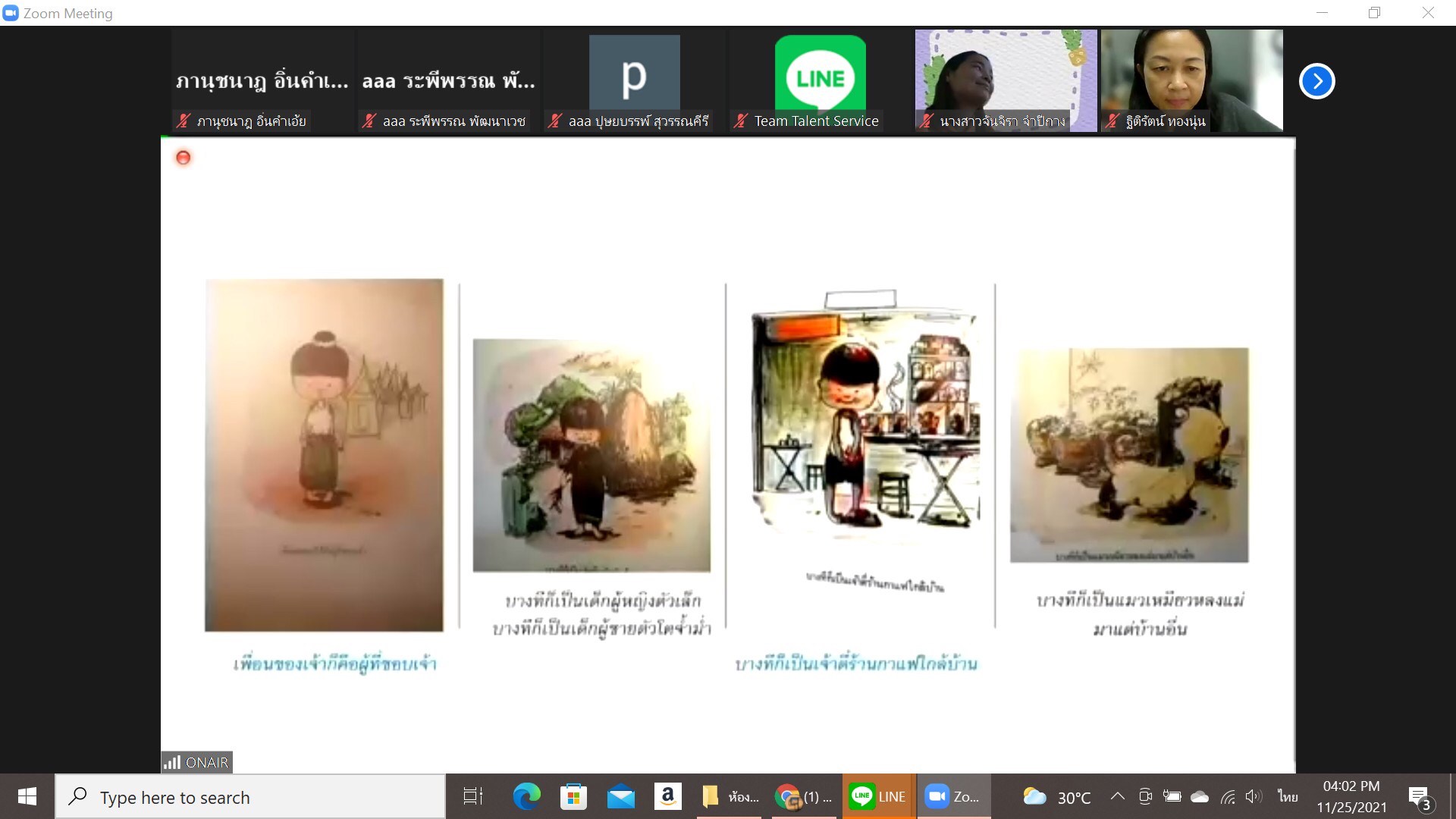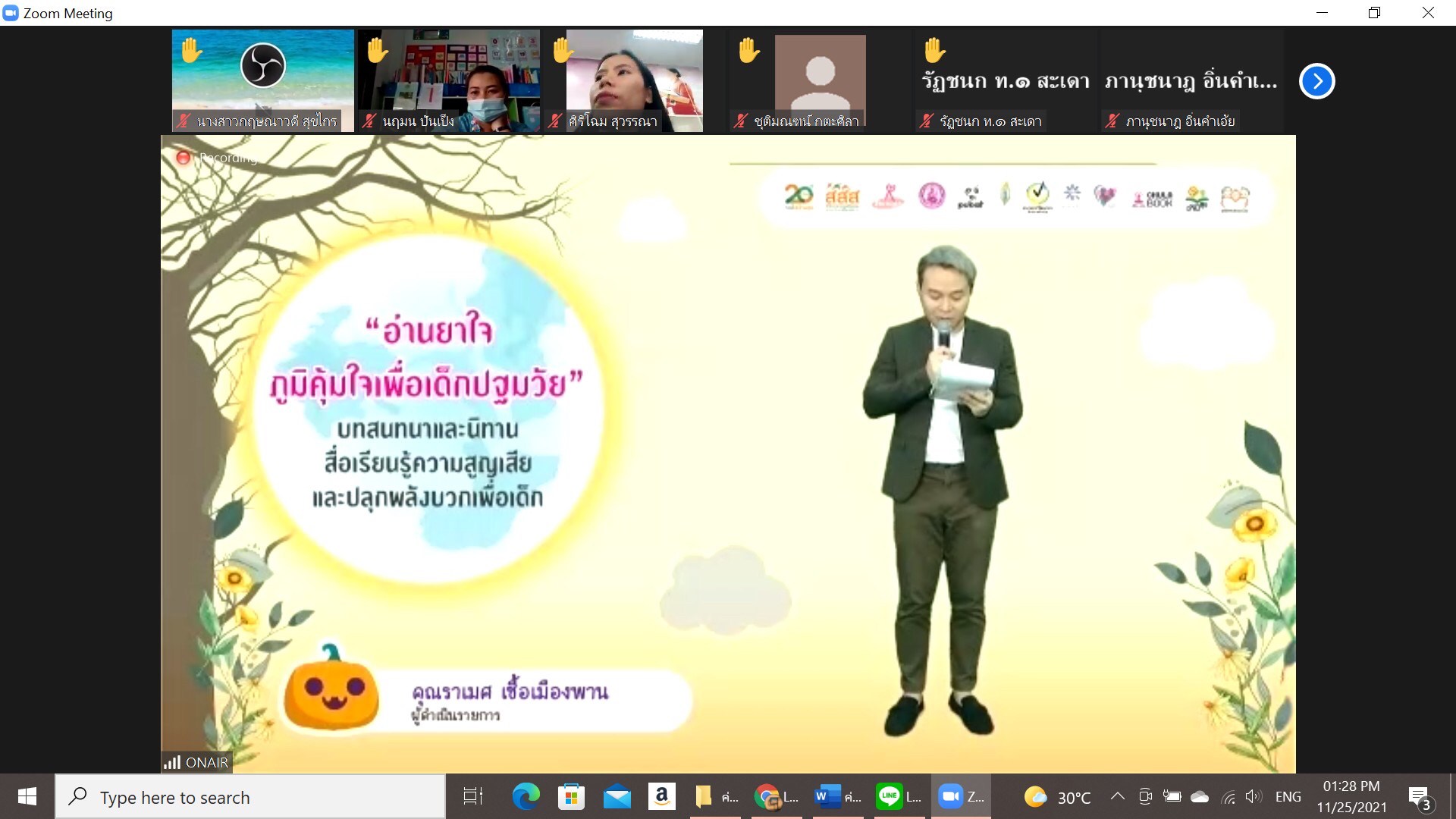 วันที่ 25 พฤศจิกายน 2564 นางสาวรติรัตน์ อินต์ธะวิชัย ผอ.กศน.อำเภอลอง มอบหมายให้บรรณารักษ์ห้องสมุดประชาชน “เฉลิมราชกุมารี” อำเภอลอง ร่วมประชุมออนไลน์หัวข้อ “อ่านยาใจ : ภูมิคุ้มใจเพื่อเด็กปฐมวัย” บทสนทนาและนิทานสื่อเรียนรู้ความสูญเสียและปลุกพลังบวกเพื่อเด็ก ผ่านระบบออนไลน์ zoom meeting